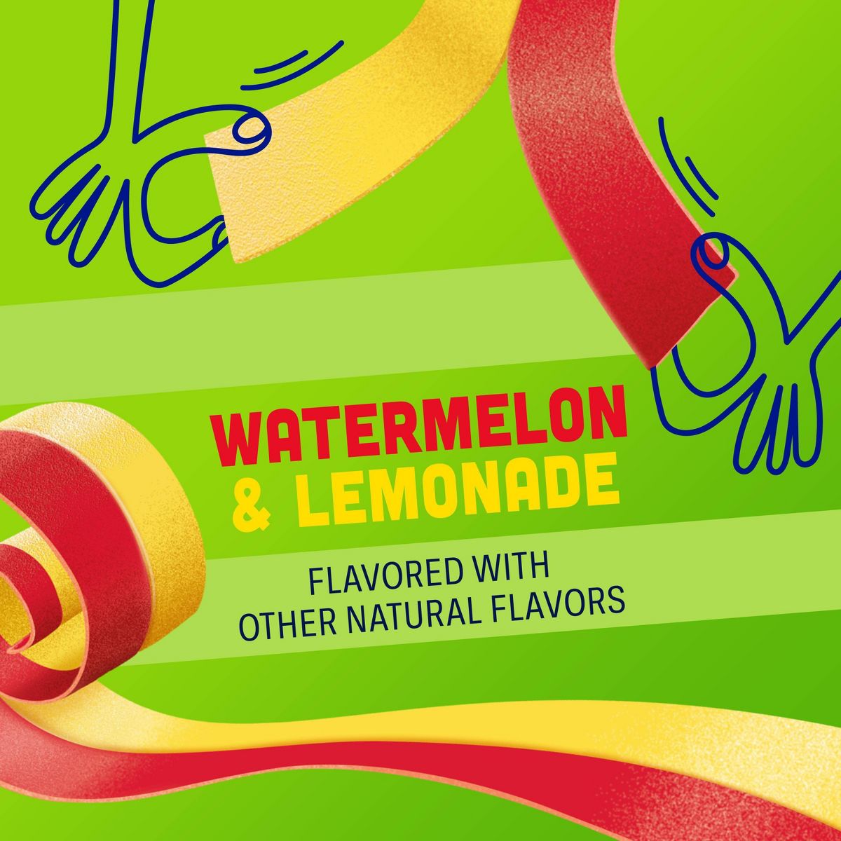 Disfruta el sabor tropical de Fruit by the Foot Duos: bocadillos de fruta sin gluten, con deliciosa combinación de sandía y limonada. ¡Perfectos para llevar!