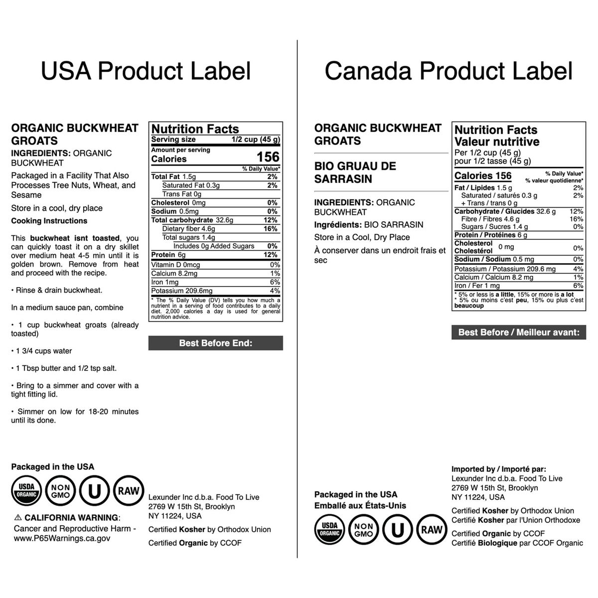 Gachas de alforfón orgánico de Food To Live. Libre de los 9 alérgenos principales. Ideal para una alimentación saludable y natural. ¡Pruébalas hoy!