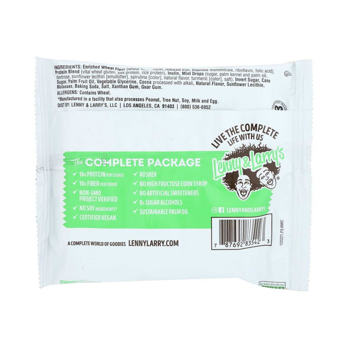 Galletas Lenny & Larry’s de chocolate y menta. Deliciosa textura masticable y chewy. Compra tu paquete con 12 barras. ¡Un snack perfecto!