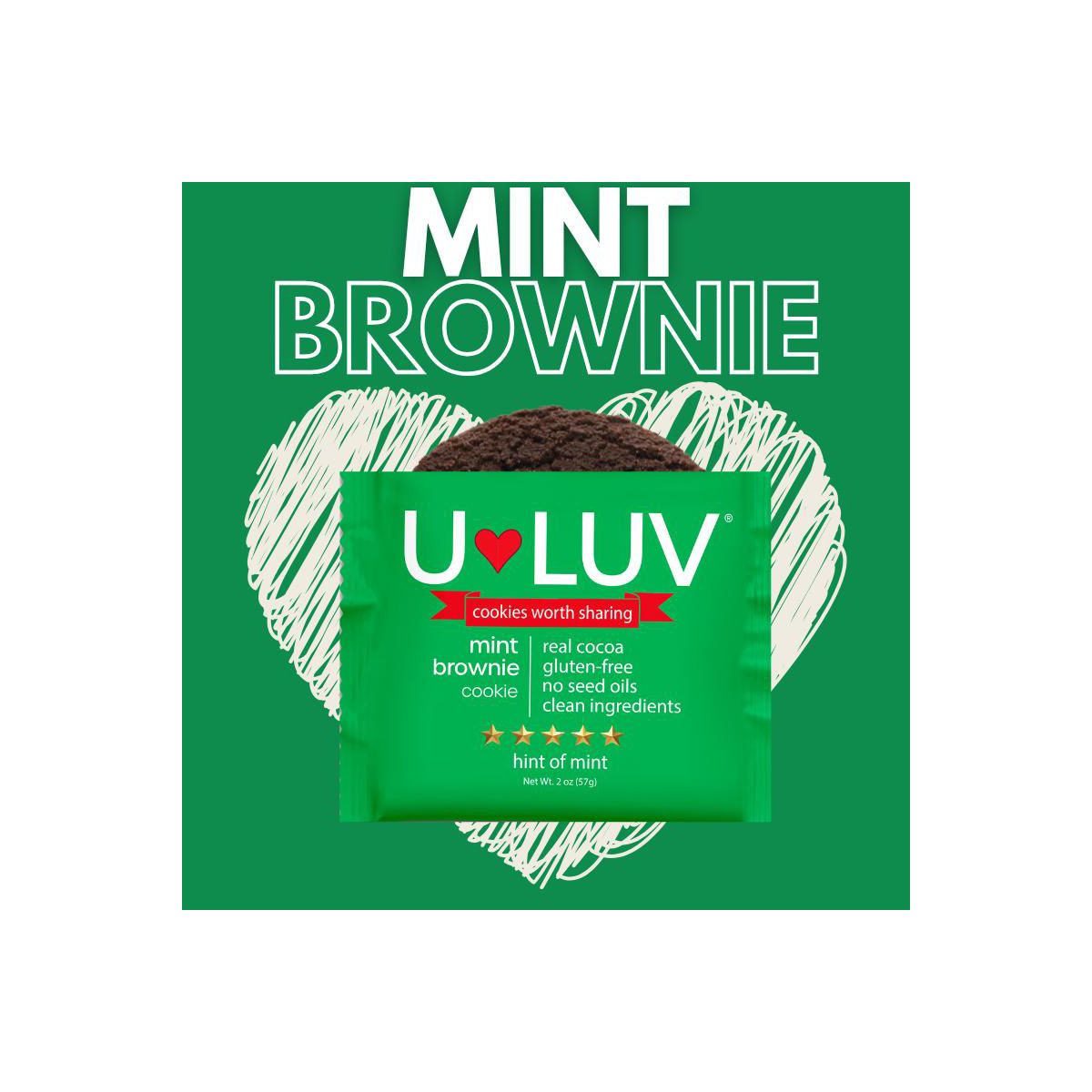 Disfruta las galletas Mint Brownie de U-LUV Foods. Delicioso sabor a chocolate con un toque refrescante de menta. ¡Listas para comer!