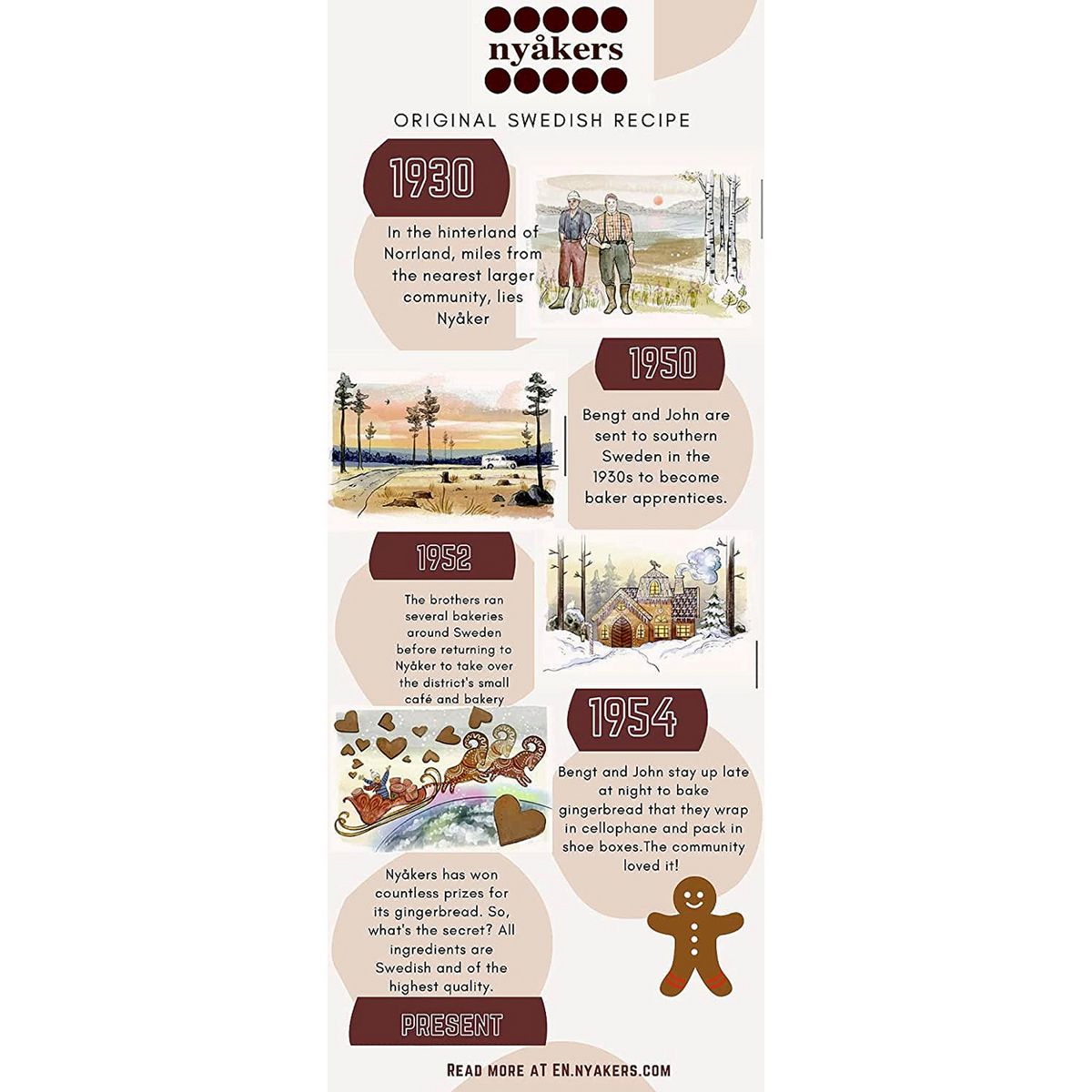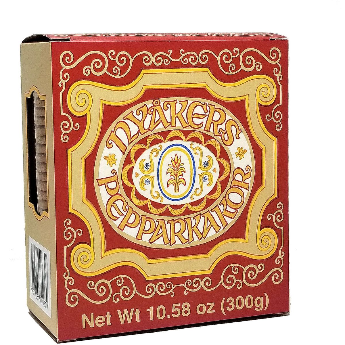 Disfruta las auténticas galletas Nyakers Pepparkakor. Gingersnaps suecas tradicionales, crujientes y especiadas, en una caja de 300 g. ¡Un sabor único!