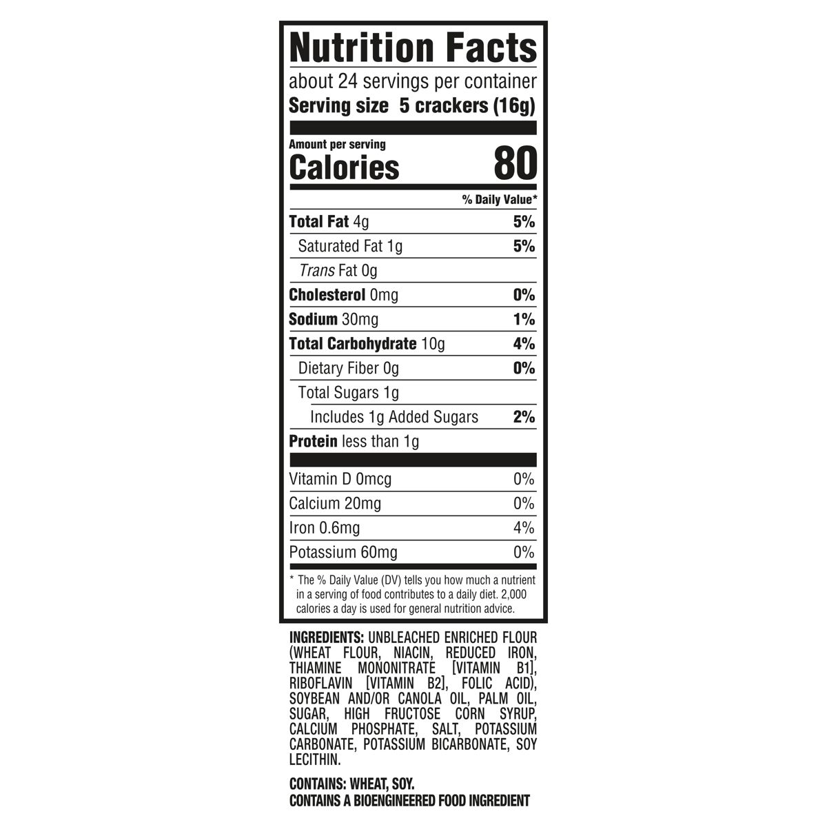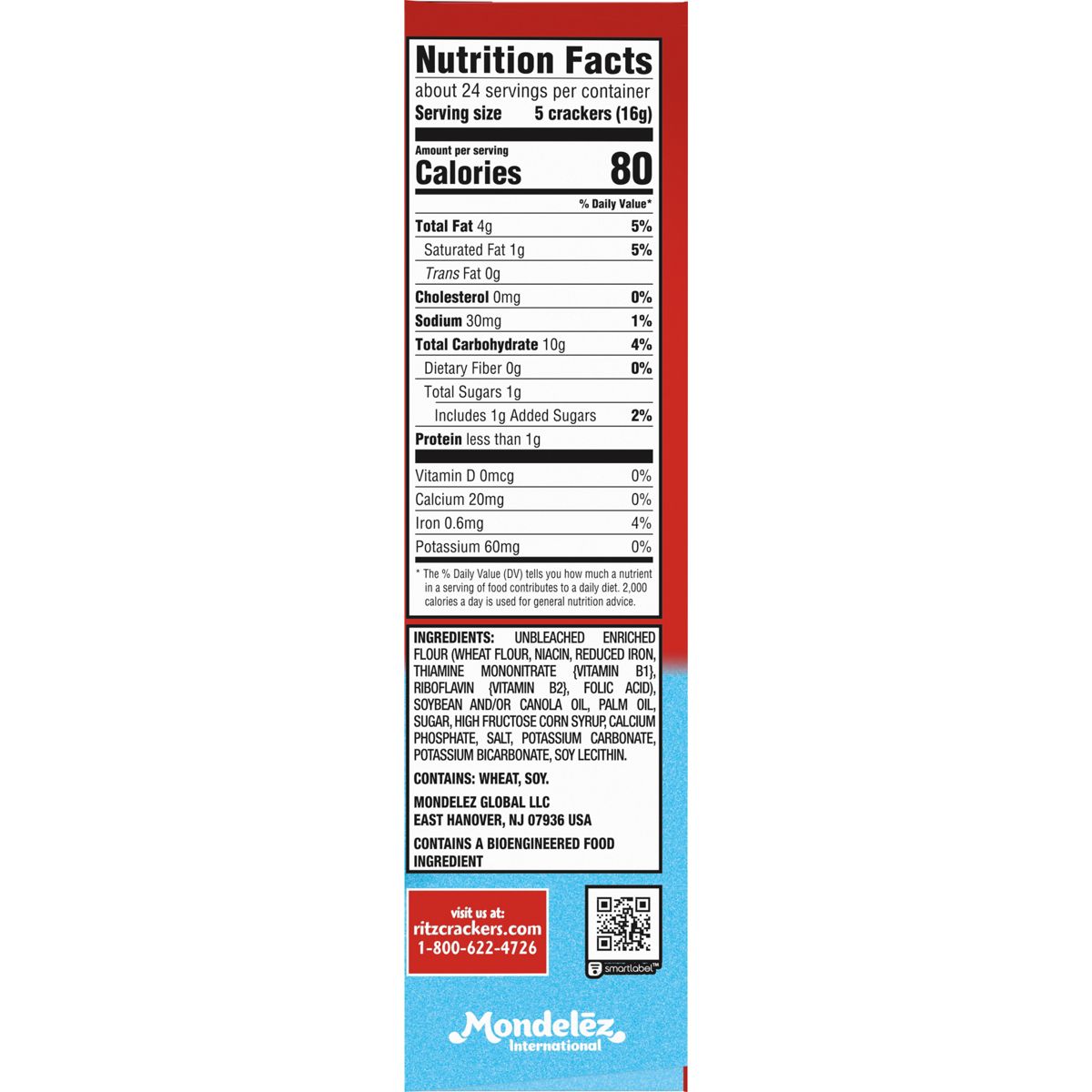 Galletas RITZ con un toque de sal, perfectas para tu lunch o snack. 0 g de grasas trans. Disfruta su sabor clásico y crujiente.