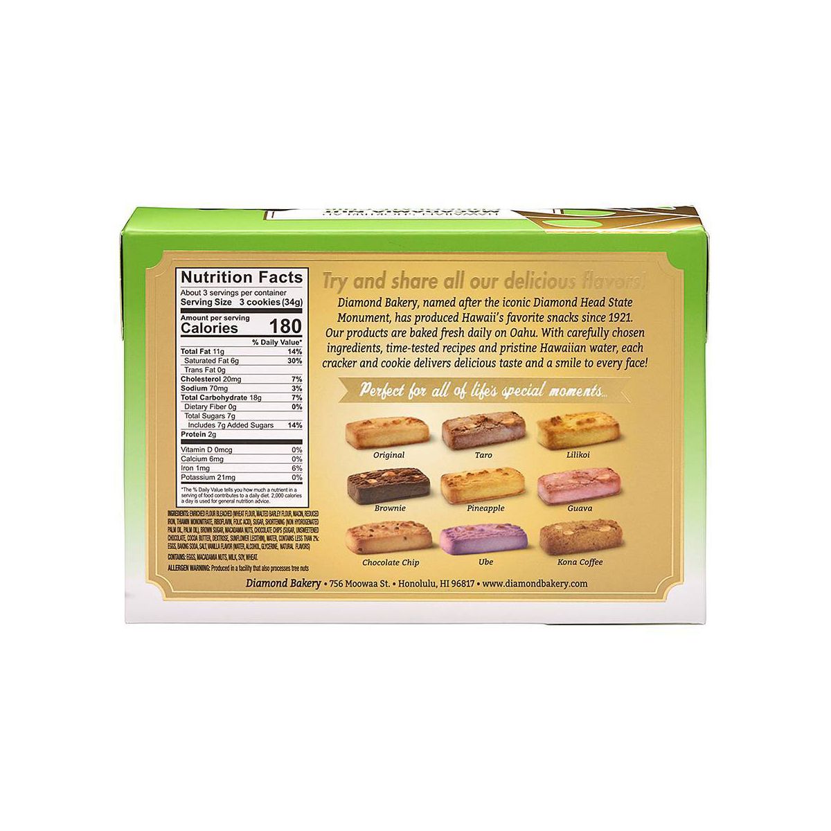 Disfruta las galletas shortbread de Diamond Bakery con chocolate y nuez macadamia hawaiana. Listas para comer, un lujo en cada bocado.