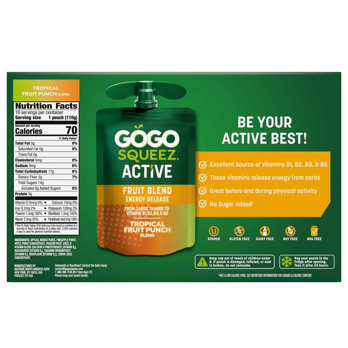 GoGo SqueeZ Active Energy Sin Azúcar Añadido Mezcla de Frutas Tropicales en Bolsitas – 3.9 oz/10 ct