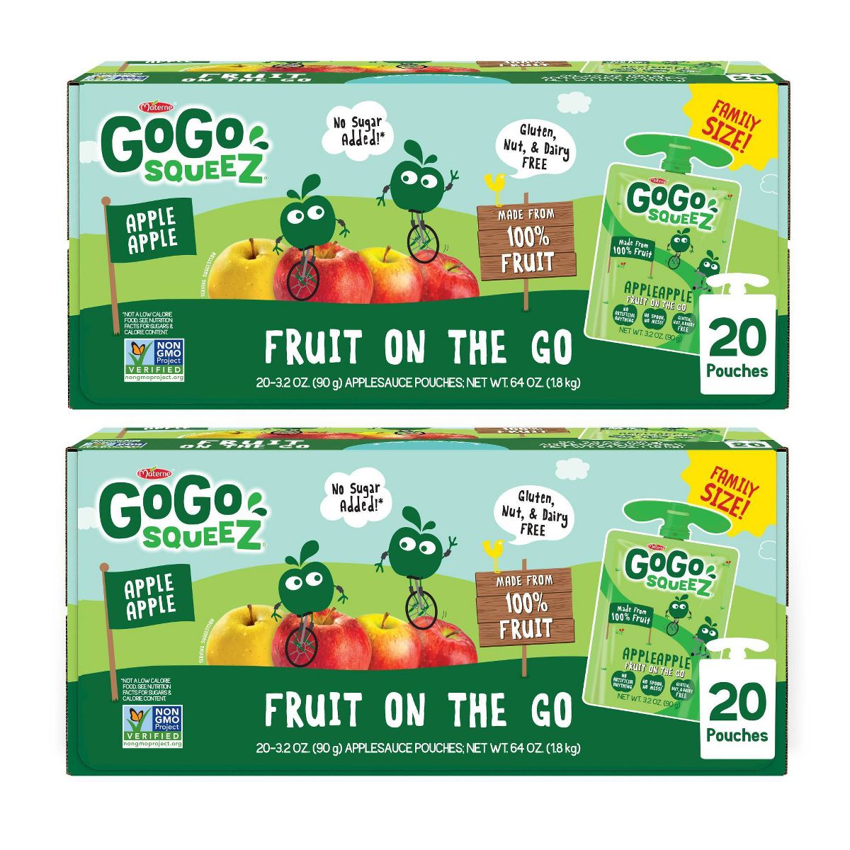 GoGo squeeZ Puré de Manzana y Fruta, Manzana Manzana – 3.2 oz/40 ct