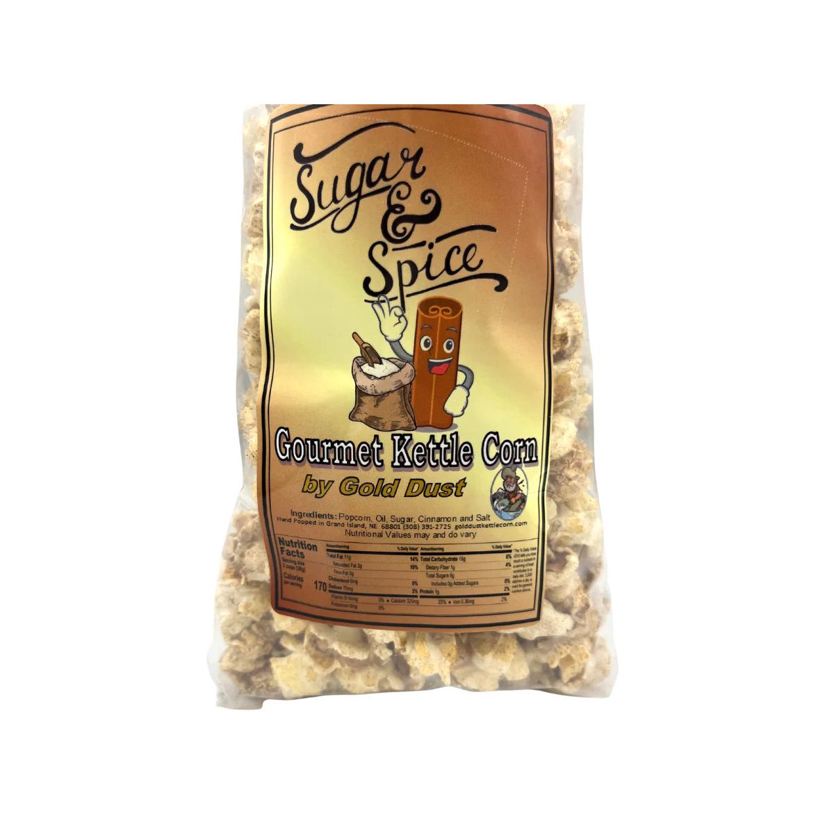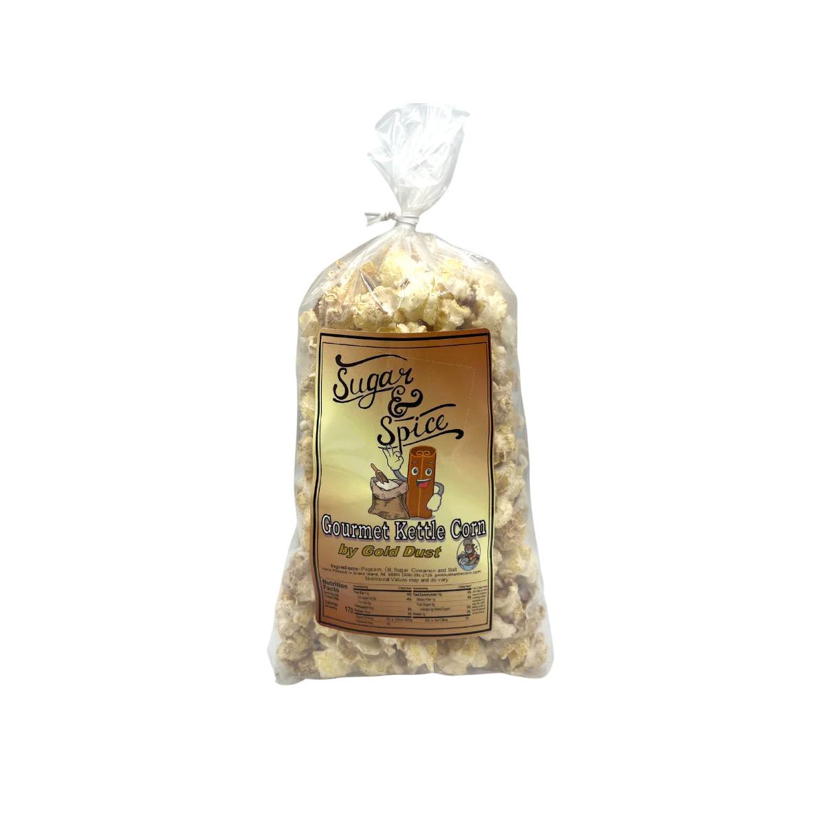 Disfruta las palomitas Gold Dust Kettle Corn con canela y azúcar. No transgénicas, listas para comer en cómodo paquete de 3. ¡Un snack irresistible!