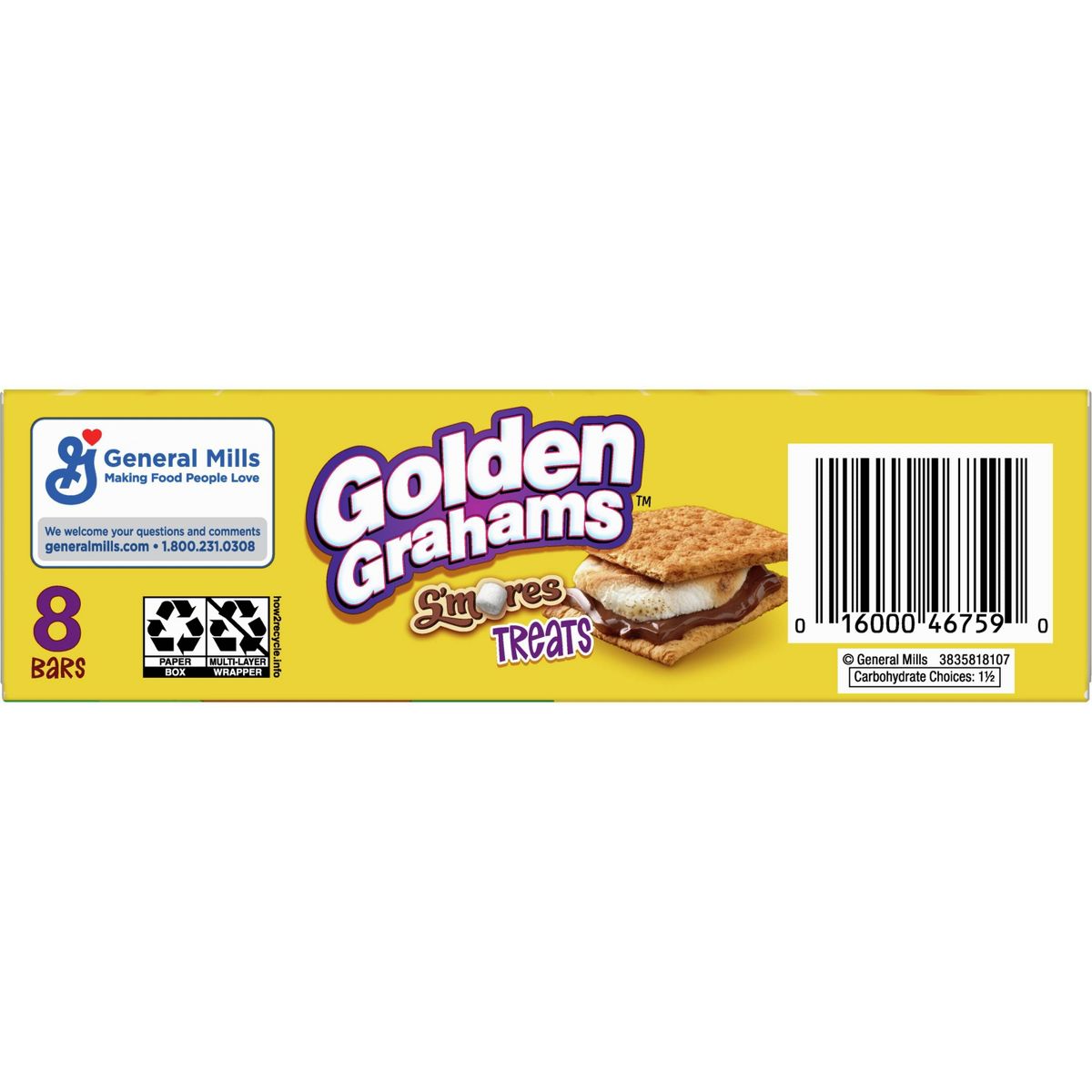 Disfruta el crujiente sabor de las barras Golden Grahams S’mores, con chocolate y malvavisco. ¡El snack perfecto para cualquier momento!