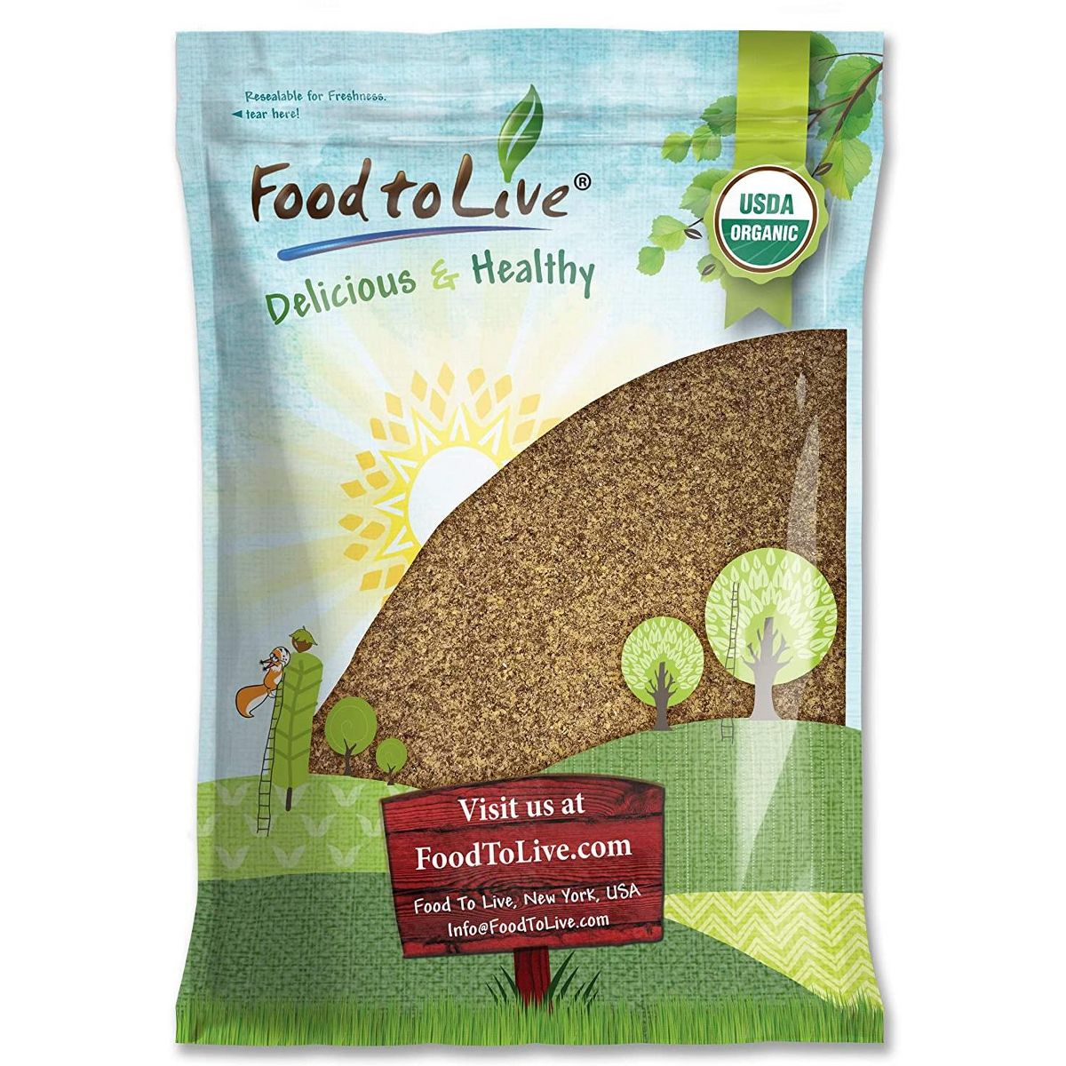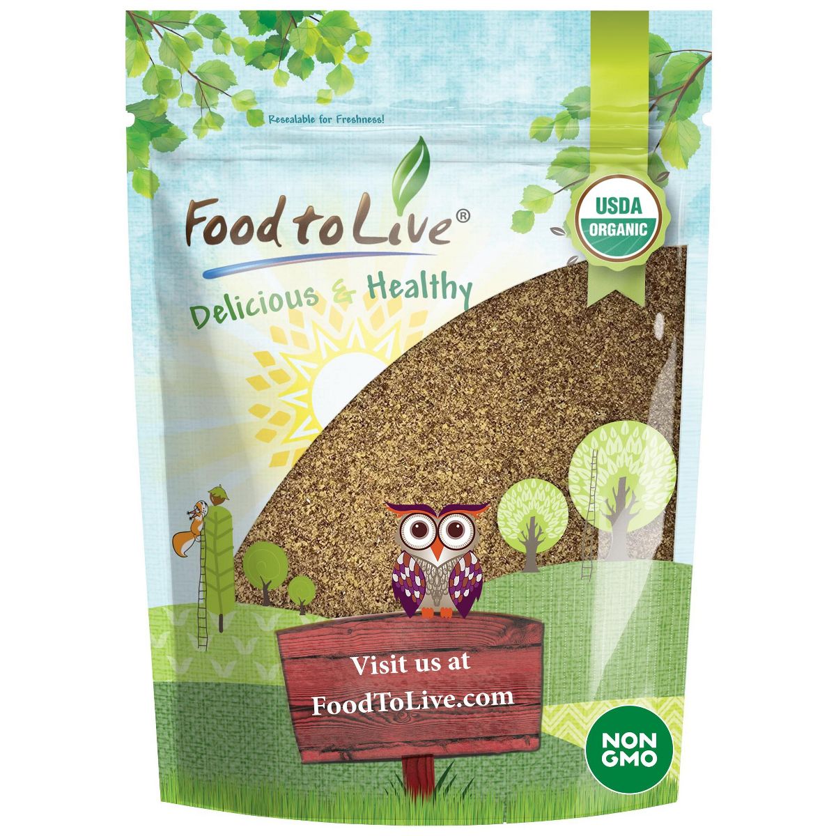 Harina de linaza marrón orgánica Food to Live. Rica en fibra y omega-3, ideal para tus recetas saludables. Sin alérgenos principales.