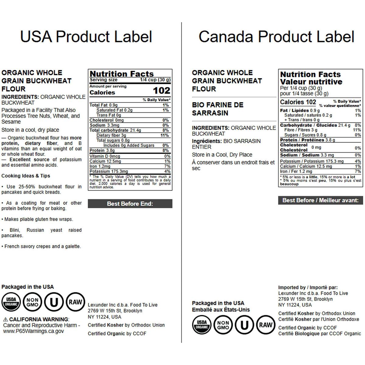 Harina integral de trigo sarraceno orgánica Food to Live. Ideal para recetas saludables, sin gluten y de alta calidad. ¡Hornea con lo mejor!