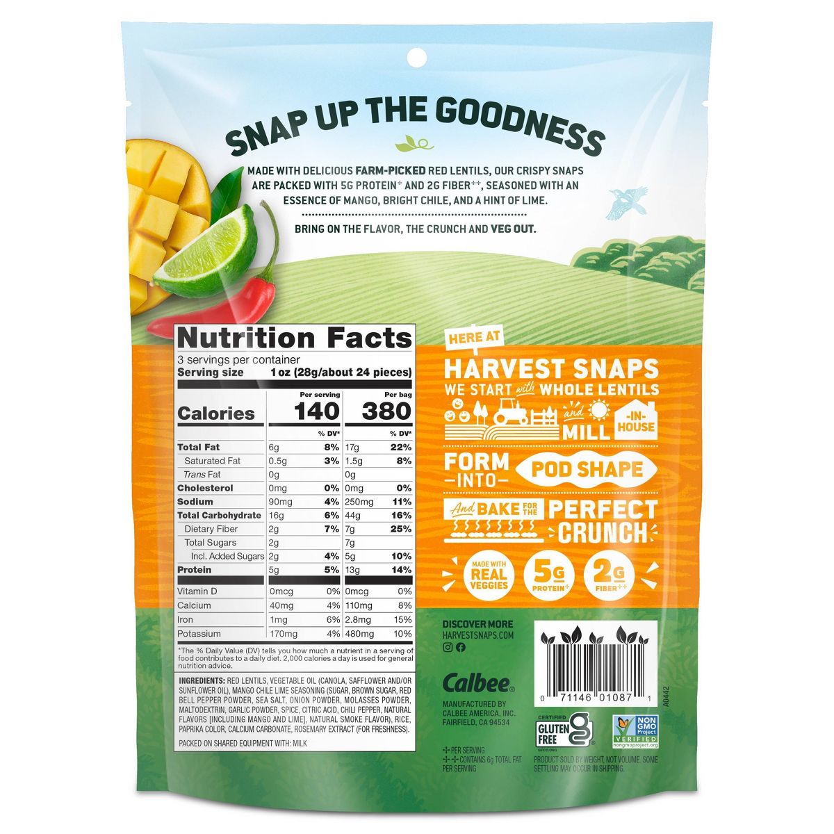 Harvest Snaps Mango Chile Lima Botanas Vegetales Horneadas y Crujientes – 3 oz
