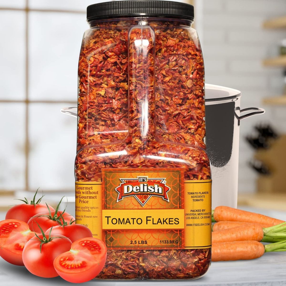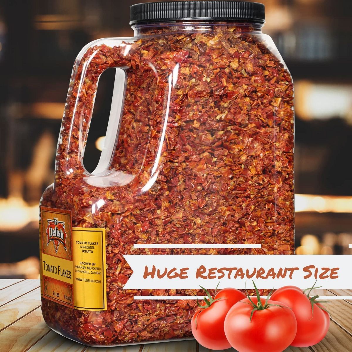 Hojuelas de Tomate Deshidratado por It’s Delish – Contenedor a Granel de 2.5 LBS, Tamaño Galón para Restaurante con Asa