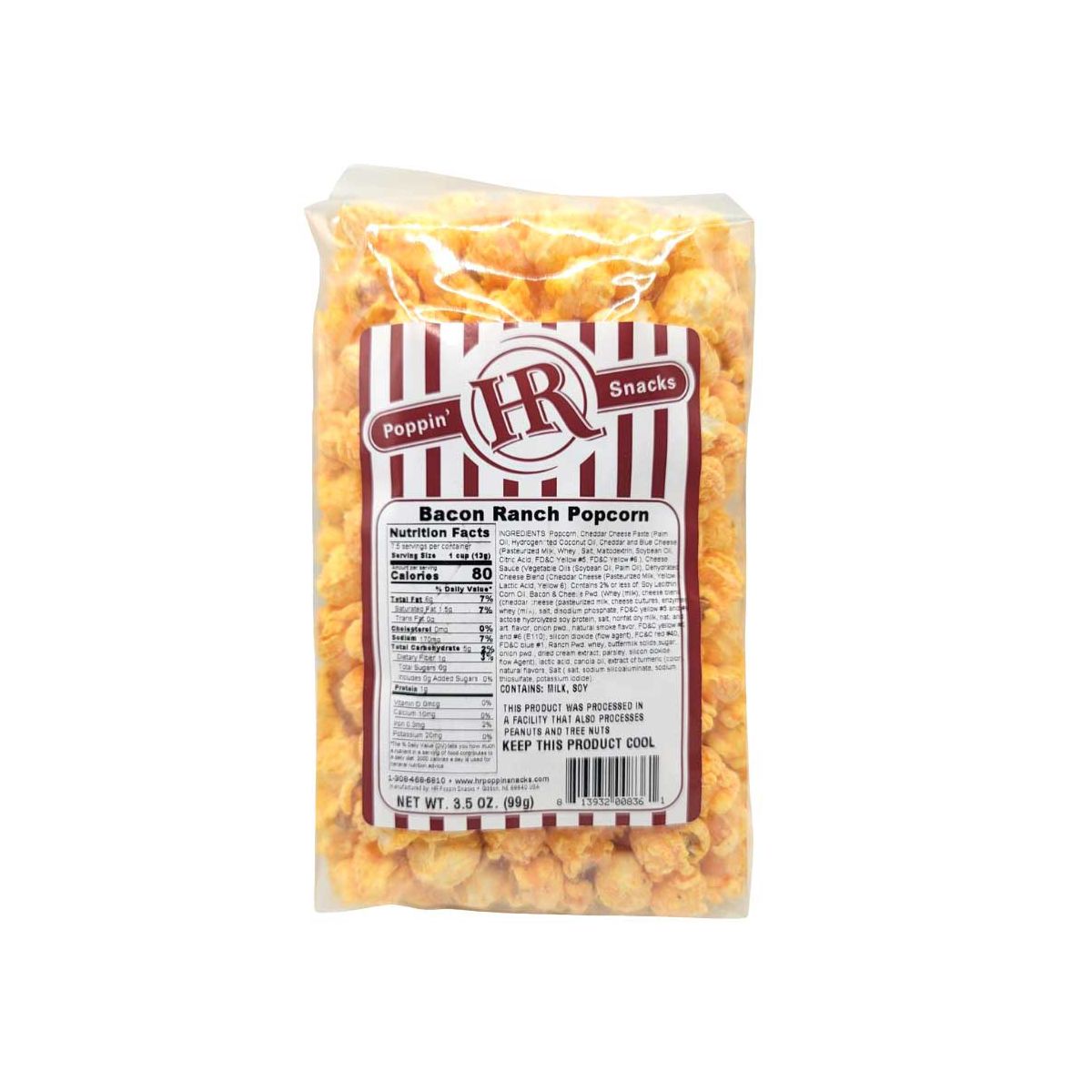 Disfruta el irresistible sabor de tocino y ranch con las palomitas HR Poppin’ Snacks. ¡Crujiente, listas para comer y en práctico paquete doble!