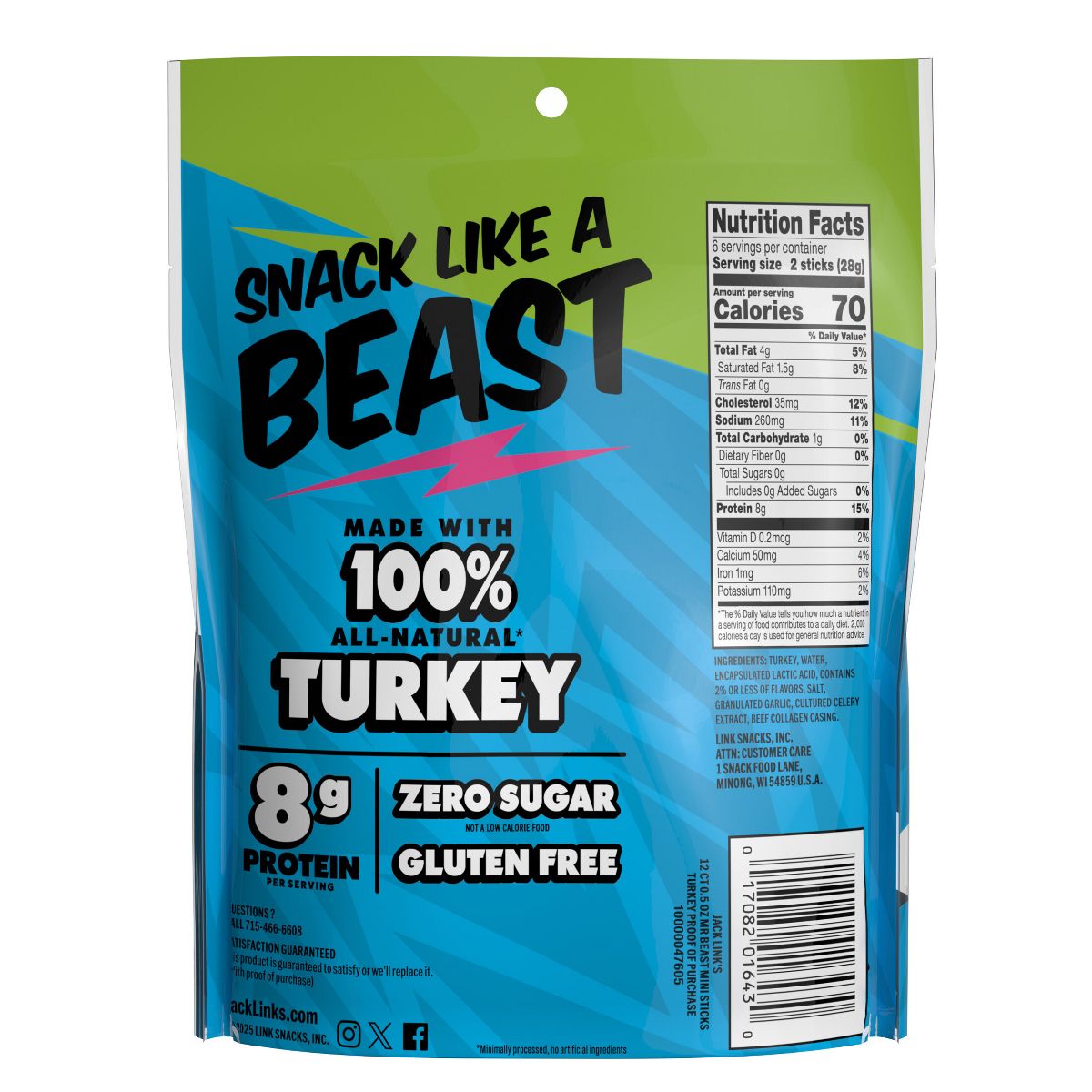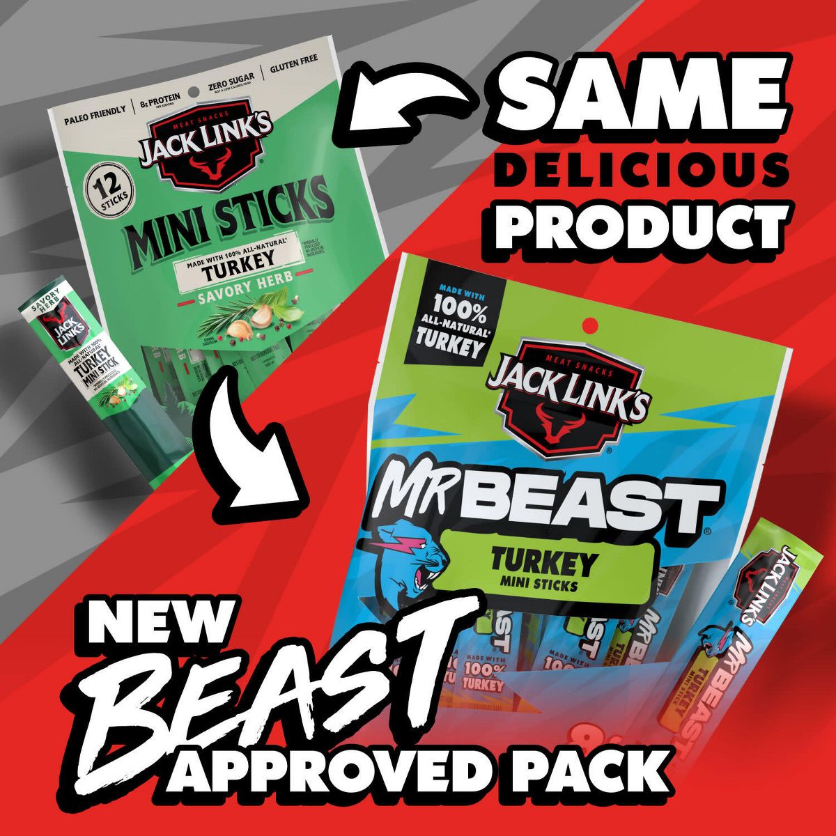 Jack Link’s MrBeast Mini Palitos de Pavo – 6 oz/12 ct