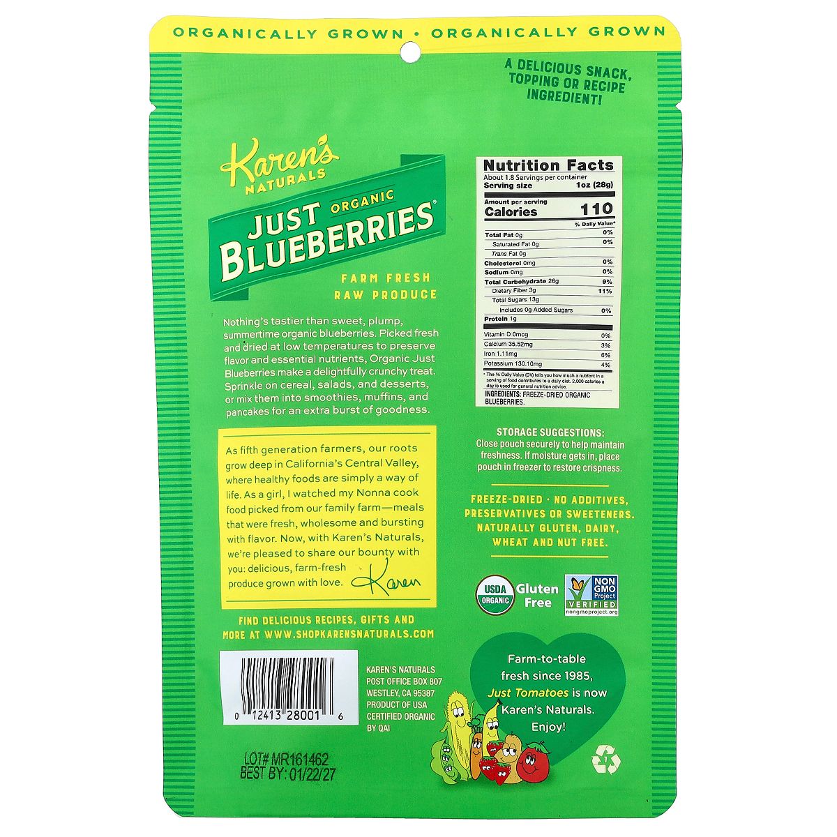 Karen’s Naturals Organic Just Blueberries®, 1.8 oz (51.1 g)