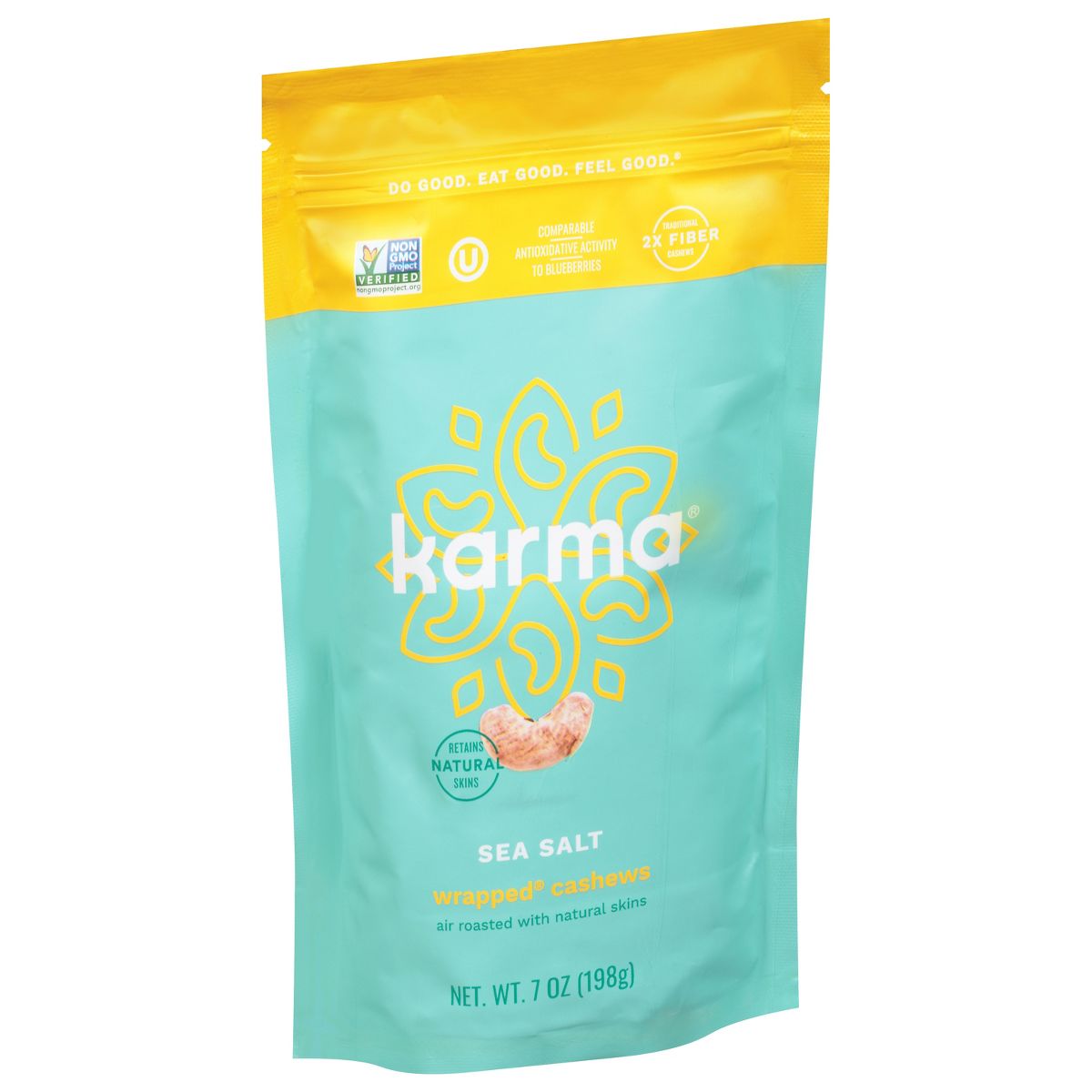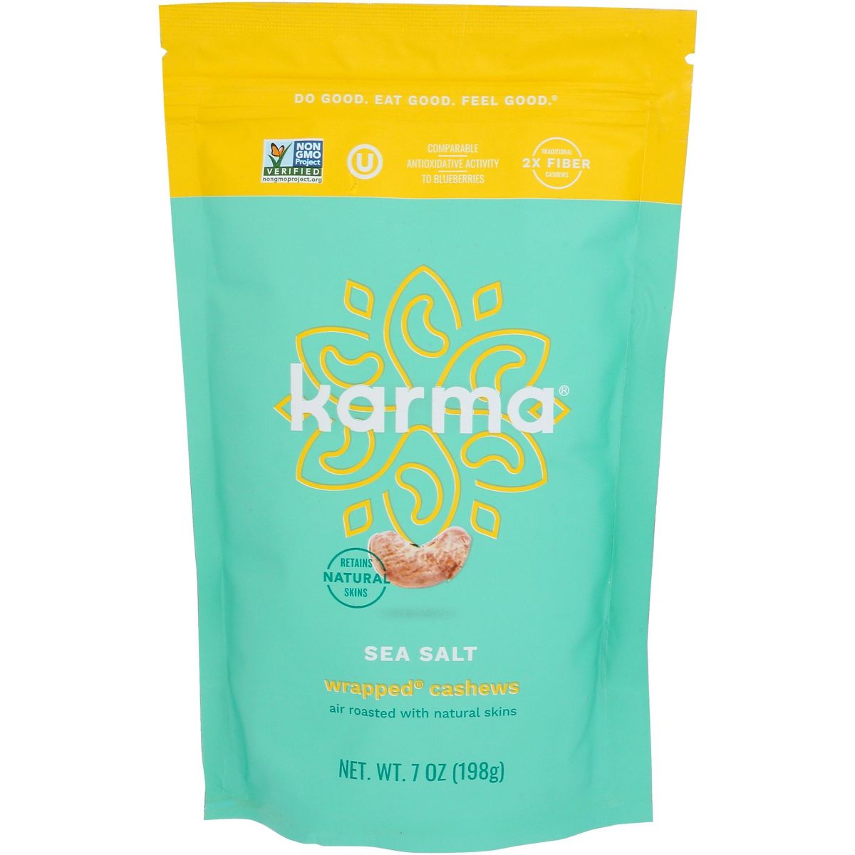 Disfruta el crujiente sabor de las Nueces de la India Karma con sal de mar. Perfectas para un snack saludable. Paquete con 6 unidades de 7 oz.