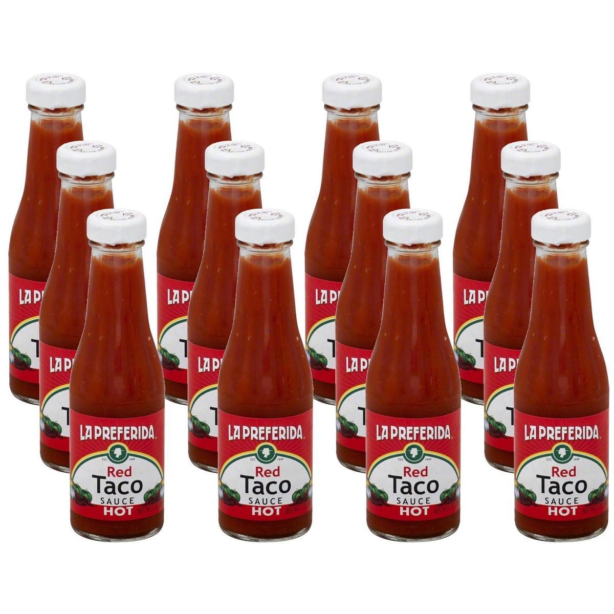 Disfruta el auténtico sabor mexicano con la Salsa Picante La Preferida Red Hot. Ideal para tacos, en práctico pack de 12 botellas de 7 oz. ¡Pruébala!