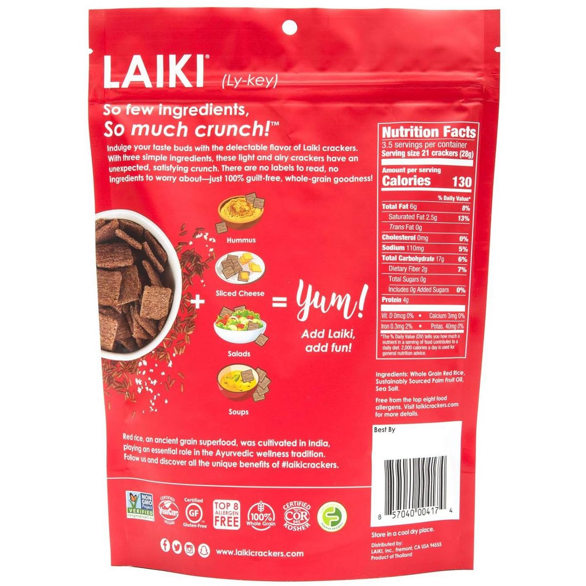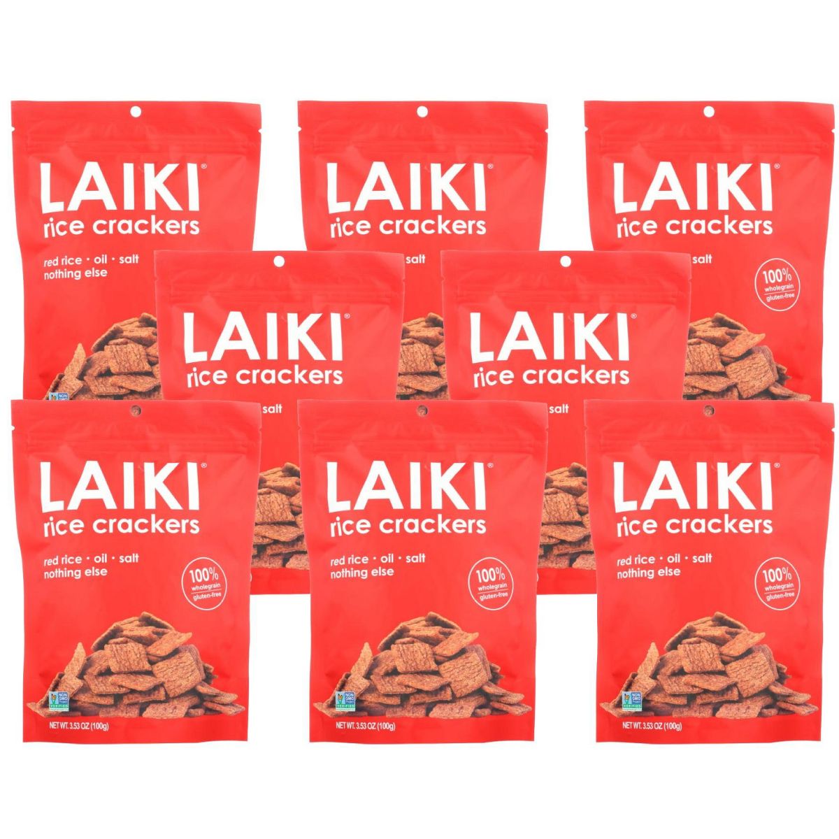 Laiki Red Rice Crackers – Caja de 8/3.53 oz