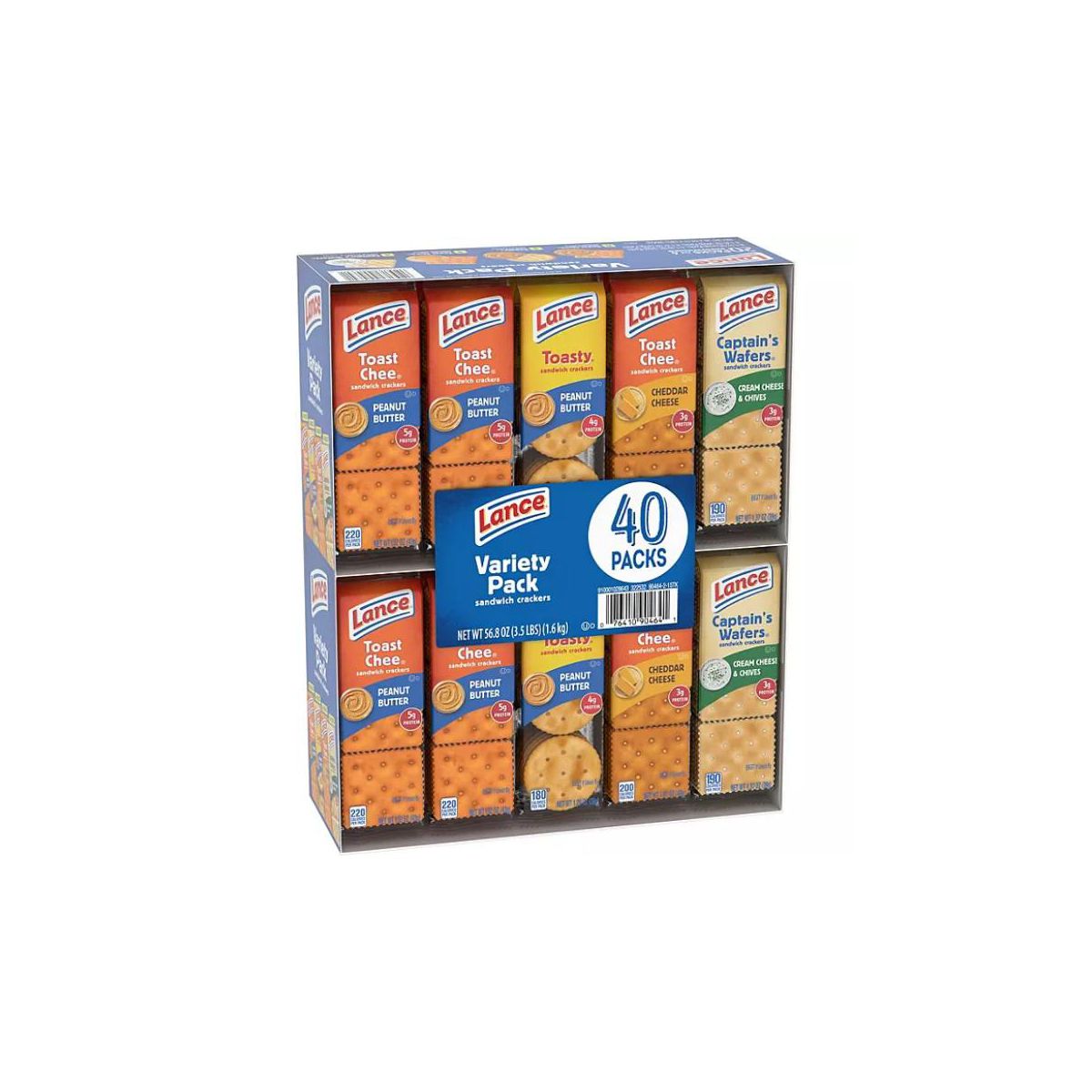 Lance Sandwich Crackers Variedad 40 Paquetes – 3 Sabores, Snack Ideal para Llevar, Casa, Escuela, Oficina y Más