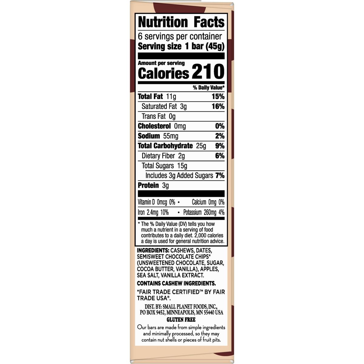 Larabar: Barra de masa para galletas con chispas de chocolate. Deliciosa textura masticable, perfecta para un snack natural y satisfactorio. ¡Pruébala!