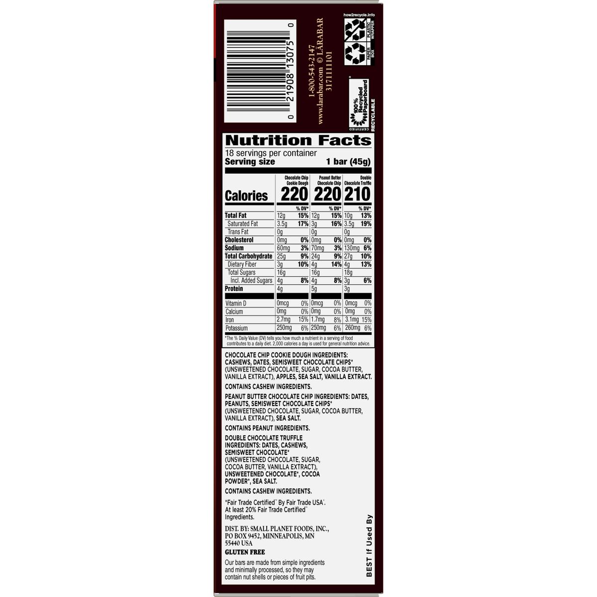 Larabar Paquete Variedad Chocolate: 18 barras de chocolate con textura masticable. Snack natural, perfecto para tu energía diaria. ¡Pruébalas!