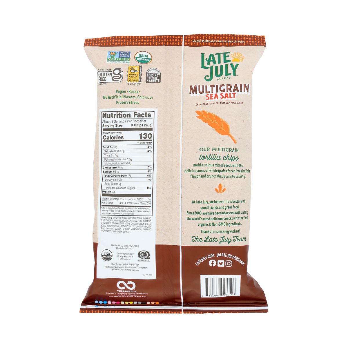 Disfruta las tortillas Late July, multigrano y con sal de mar. Orgánicas, sin gluten y no transgénicas. Perfectas para un snack saludable.