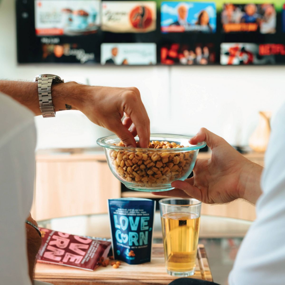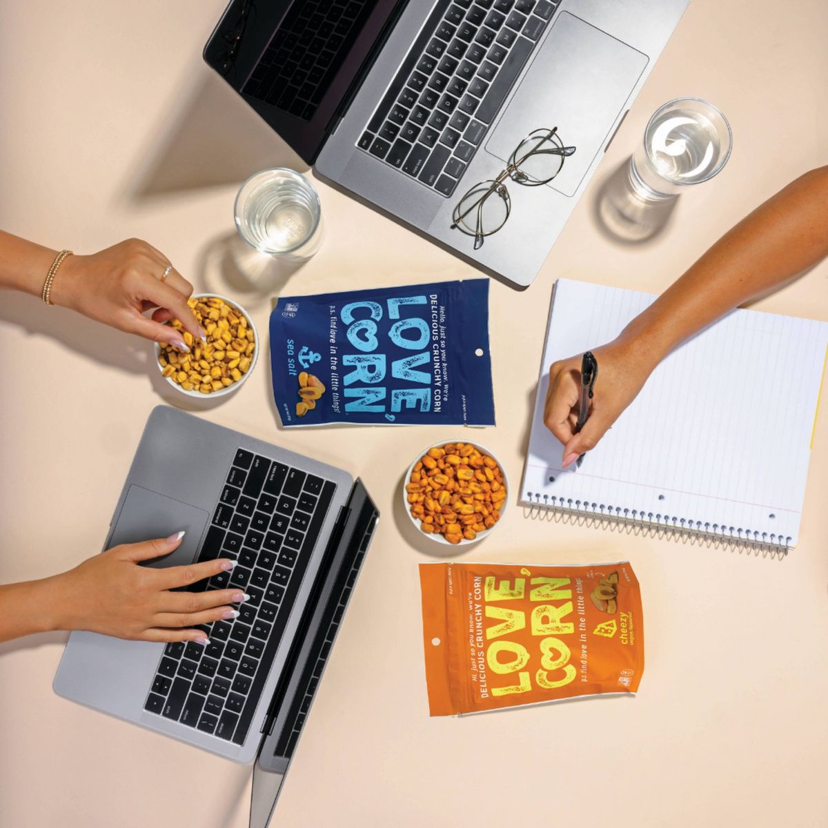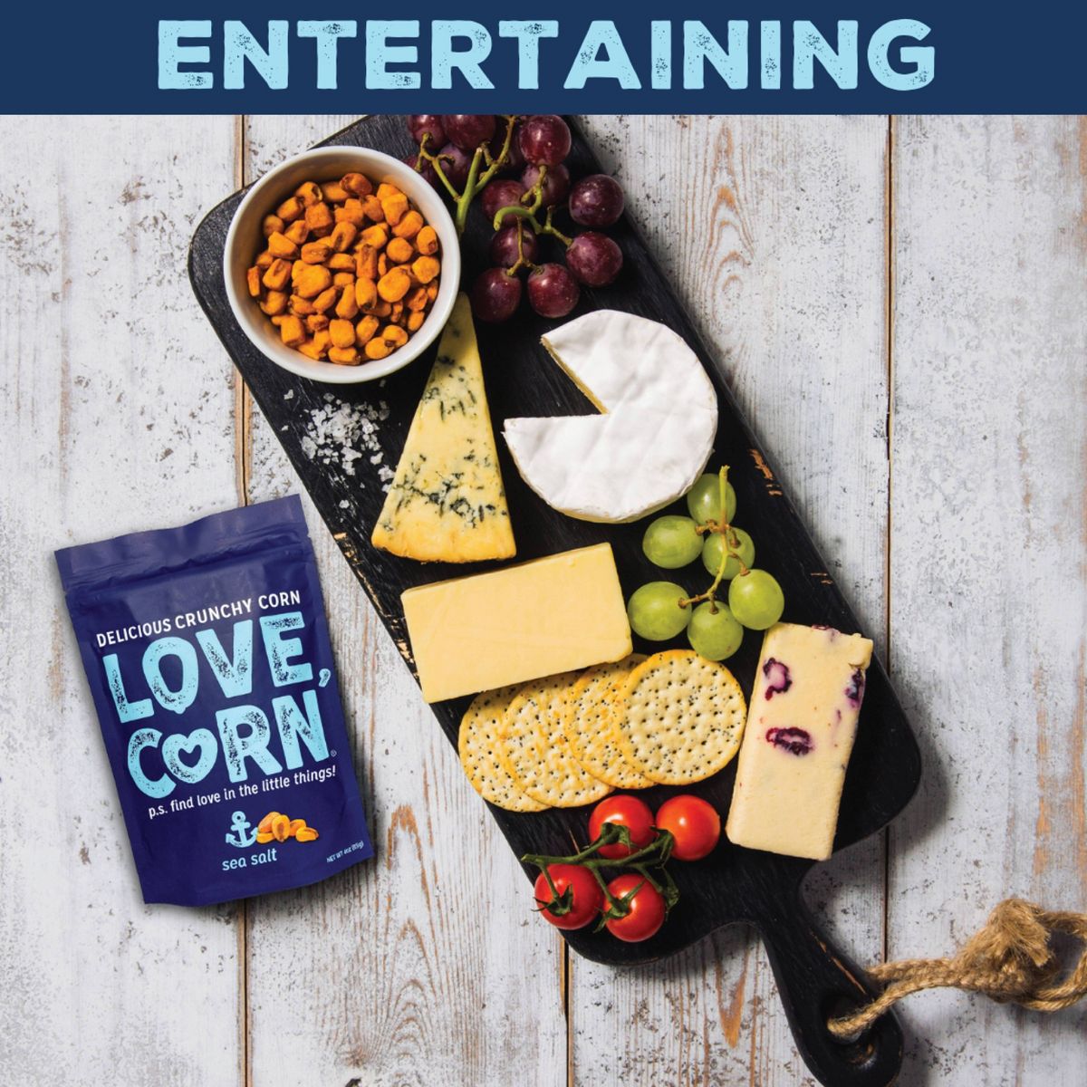 Disfruta el crujiente sabor del maíz LOVE, CORN con sal de mar. Snack vegano, Kosher y sin OGM. ¡Perfecto para cualquier momento!
