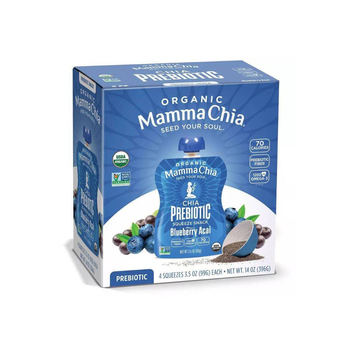 Mamma Chia Squeeze Vitality Snack de Arándano y Açai – 14 oz/4 paquetes