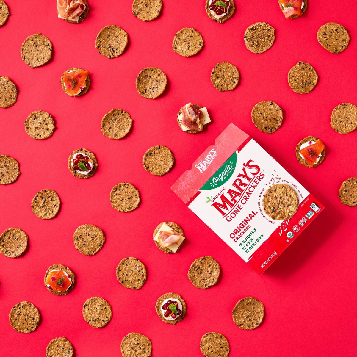 Galletas Mary’s Gone Crackers Original sin gluten. Veganas, orgánicas y bajas en colesterol. El snack crujiente y delicioso para tu estilo de vida.