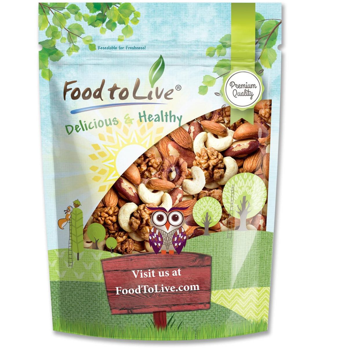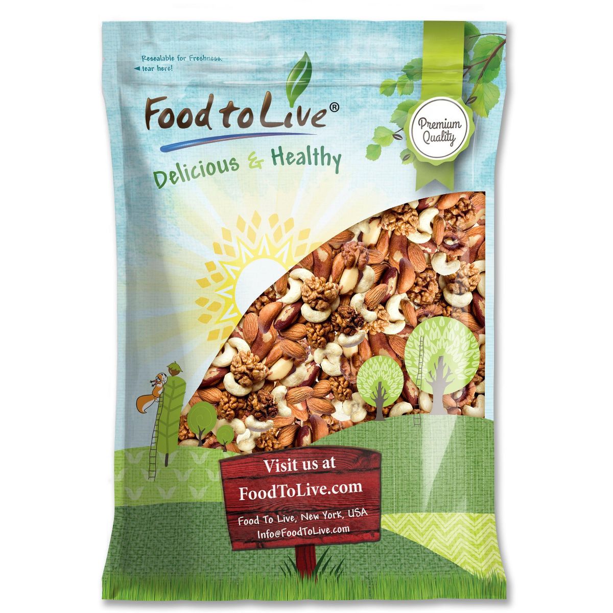 Mezcla de nueces crudas enteras Food to Live. Snack natural, nutritivo y delicioso para una vida saludable. ¡Pruébalas hoy!