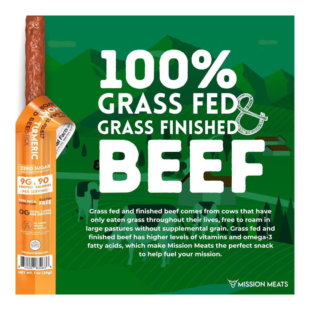 Mission Meats: Snack saludable de carne de res 100% alimentada con pastura. Sin azúcar, sin gluten, 9g de proteína por porción. Ideal para Paleo y Whole30.