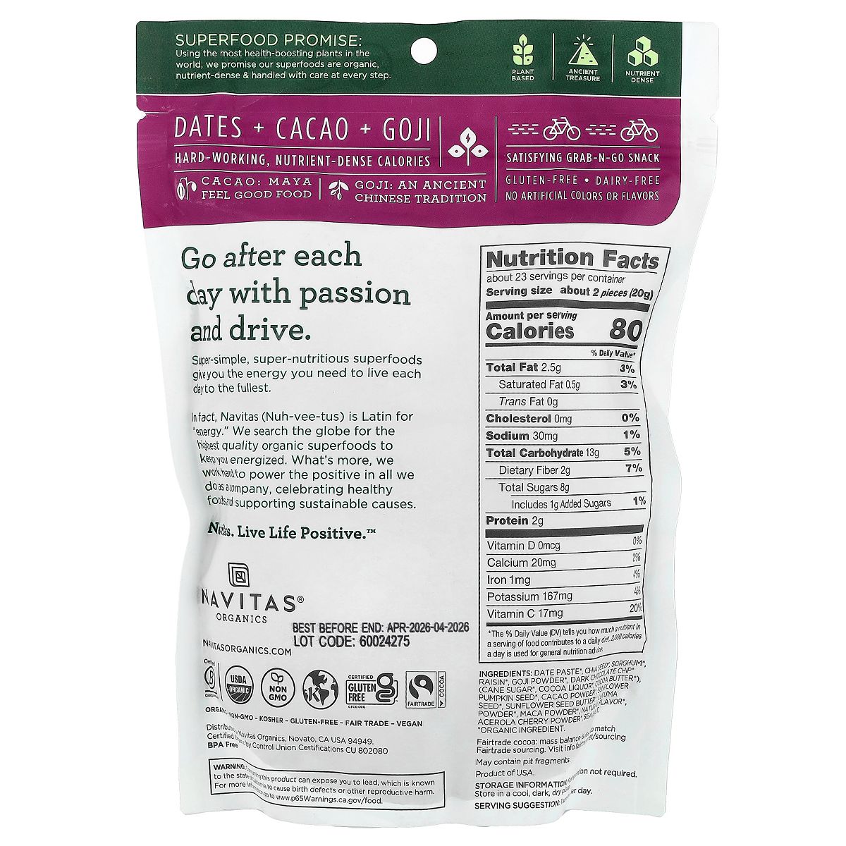 Navitas Organics Snacks Energéticos Orgánicos, Cacao Goji, 16 oz (454 g)