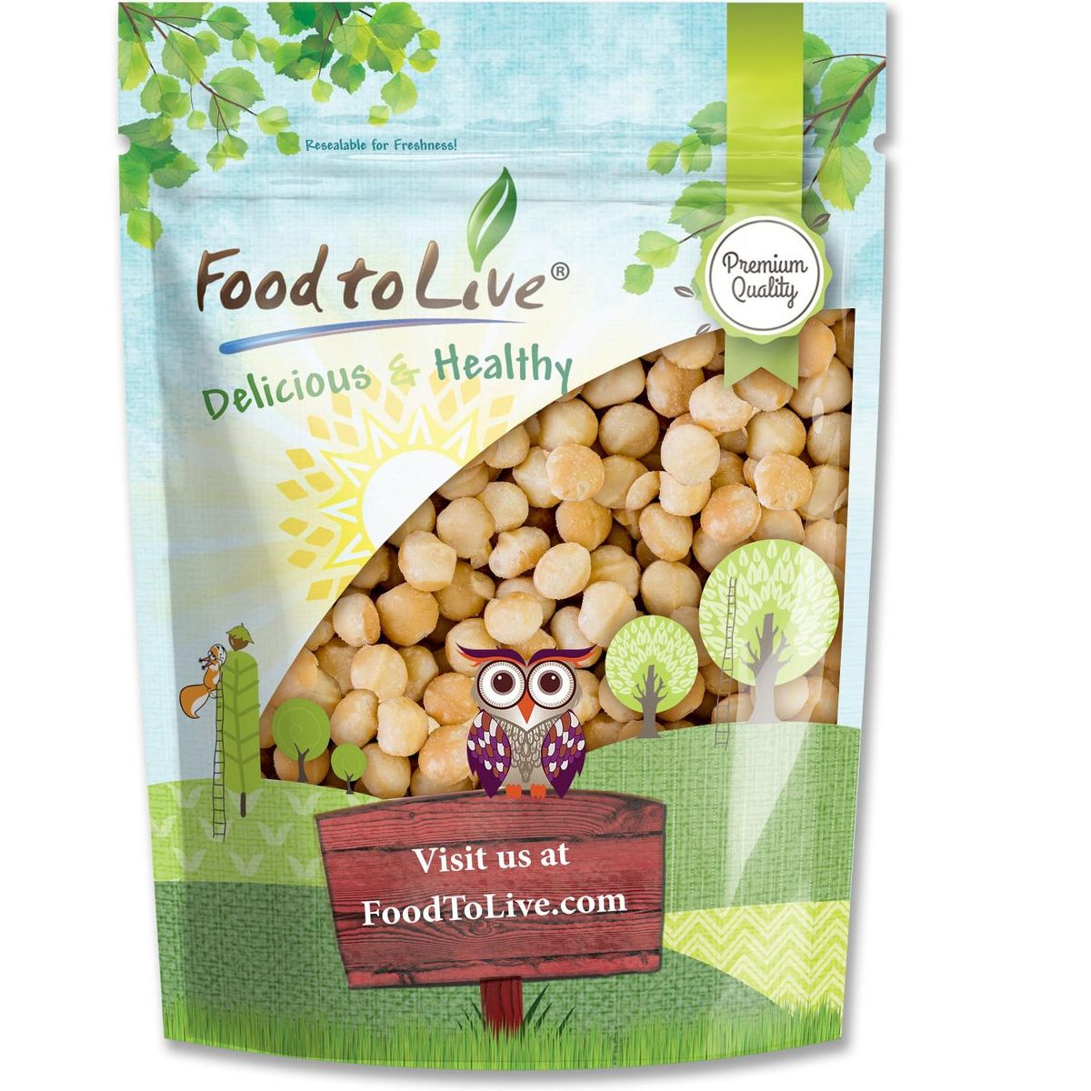 Disfruta nueces de macadamia tostadas al horno, enteras y sin aditivos. Botana vegana, keto y kosher de Food to Live. ¡Sabor natural a granel!