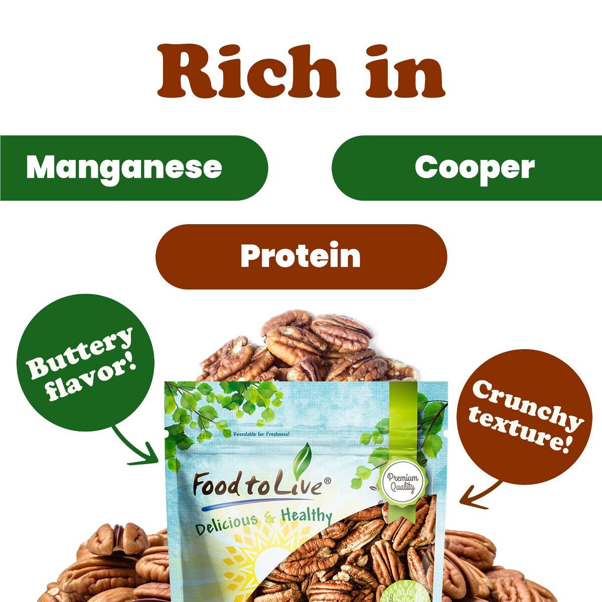 Nueces Pecanas naturales y sin cáscara de Food to Live. Kosher, veganas y parte de la dieta Sirtfood. ¡El snack saludable perfecto!