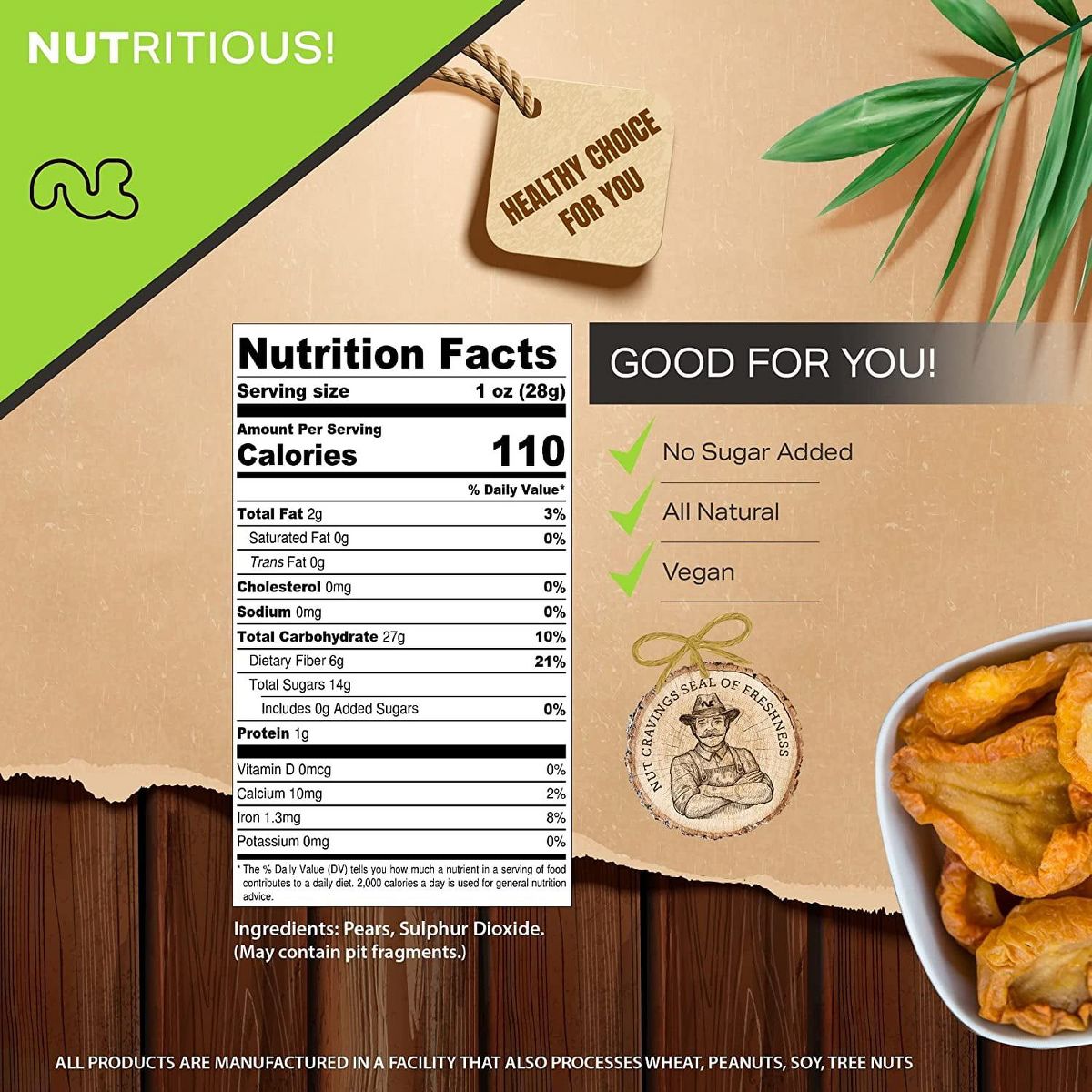 Nut Cravings Peras Californianas Secas, Snack de Fruta Sin Azúcar Añadida