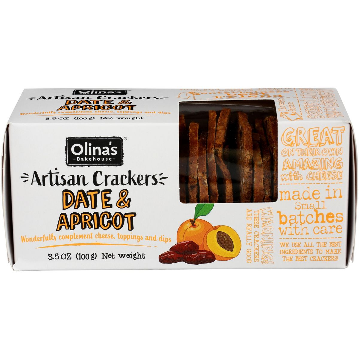 Olina’s Bakehouse Crisps de Dátil y Albaricoque – Caja con 12 – 3.5 oz