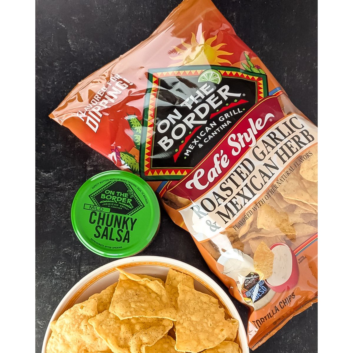 Disfruta los crujientes chips On the Border con el delicioso sabor a ajo y hierbas. Perfectos para tus fiestas o antojos.