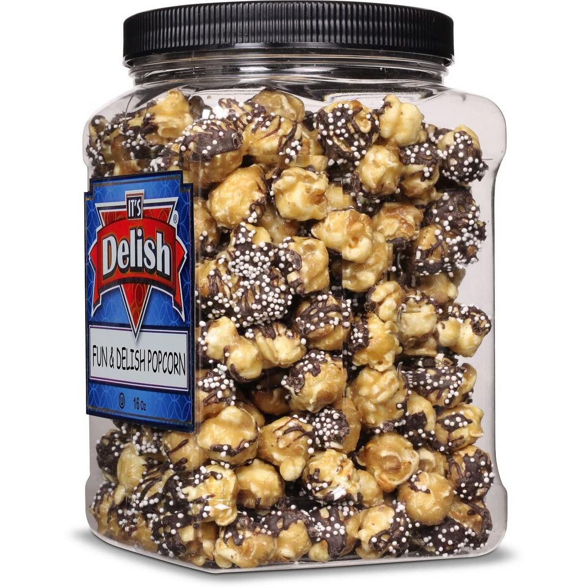 Palomitas de Caramelo y Chocolate Divertidas y Deliciosas de It’s Delish, Contenedor Jumbo de 16 Oz
