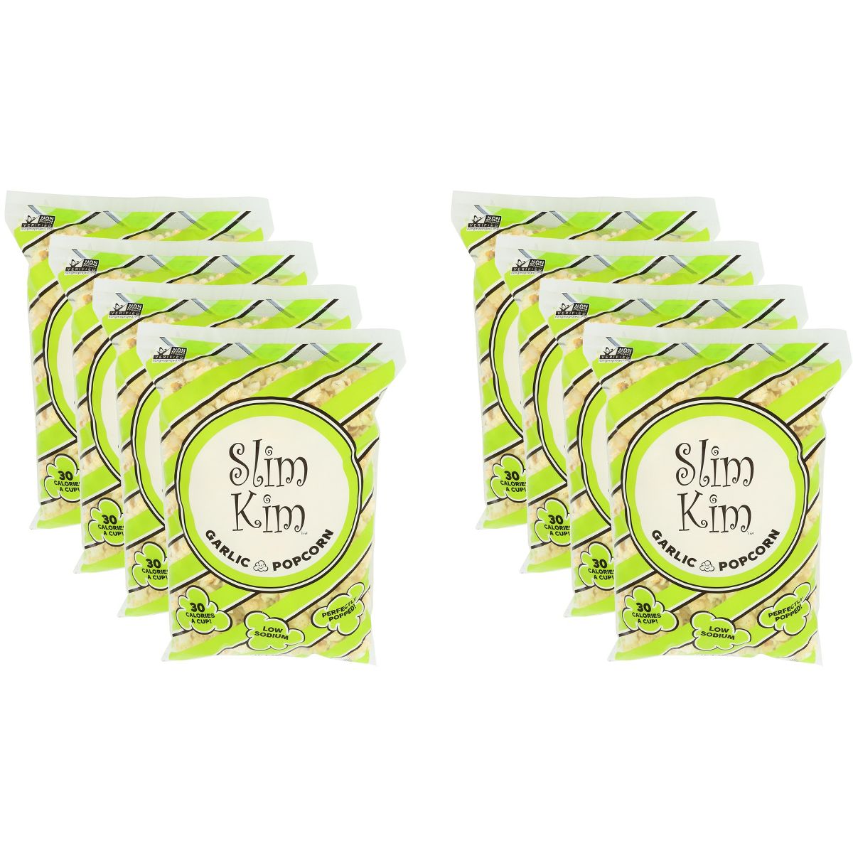 Disfruta las palomitas Slim Kim sabor ajo, crujientes y ligeras. Caja con 8 bolsas de 6 oz. ¡El snack perfecto para compartir!