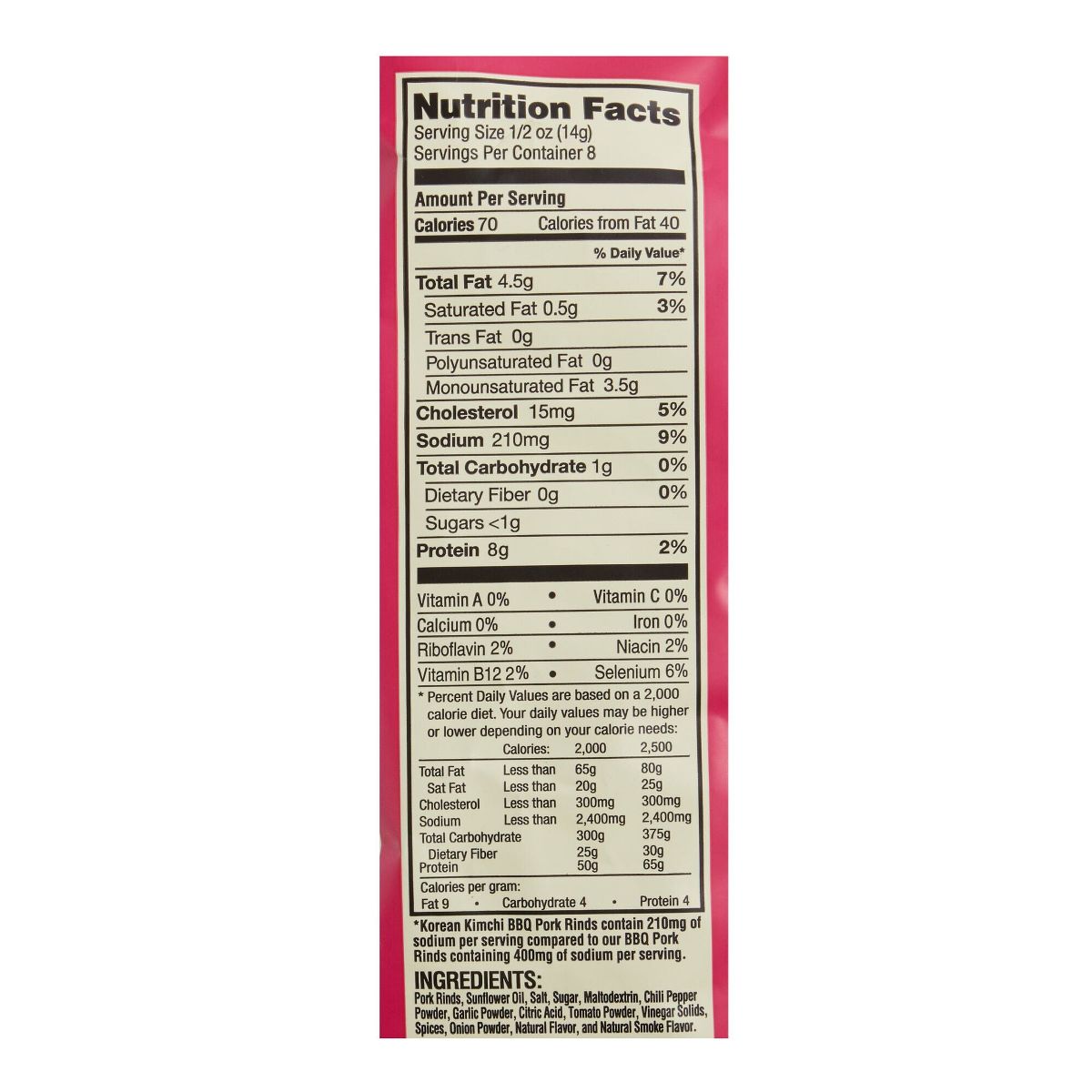 Disfruta el audaz sabor BBQ Kimchi Coreano en estas crujientes papas fritas de cerdo de Southern Recipe. Snack premium de 4 oz.