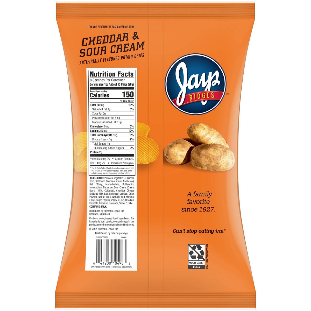 Papas Jays Ridges Cheddar y Crema Ácida – 8 oz