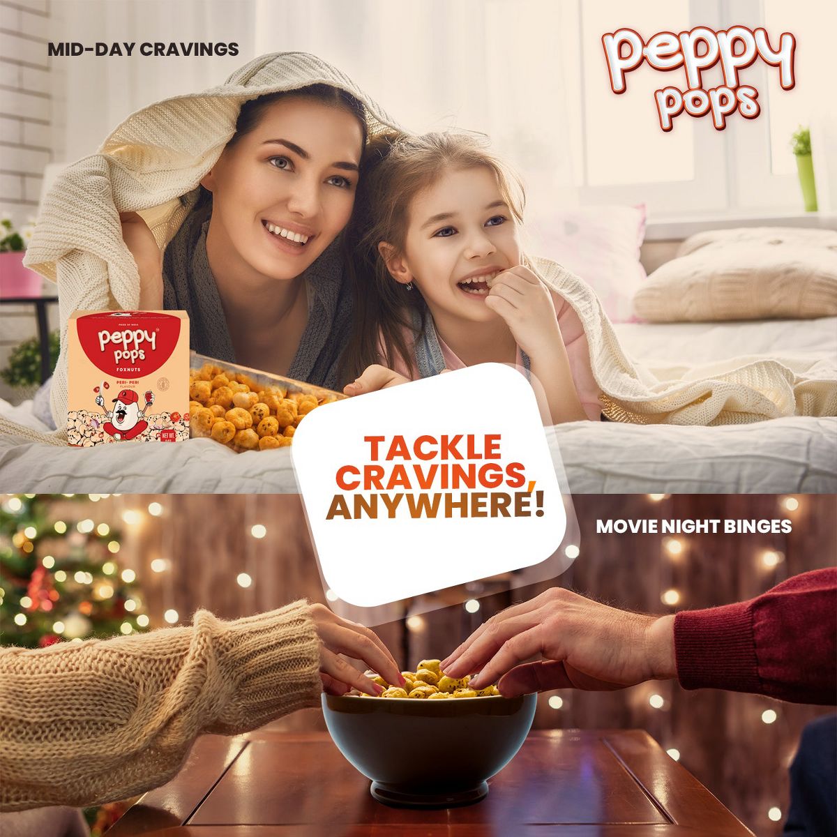 Disfruta los PEPPY POPS PERI PERI de Pride of India. Tostadas de foxnuts infladas con el sabor picante y único del peri peri. ¡Irresistibles!
