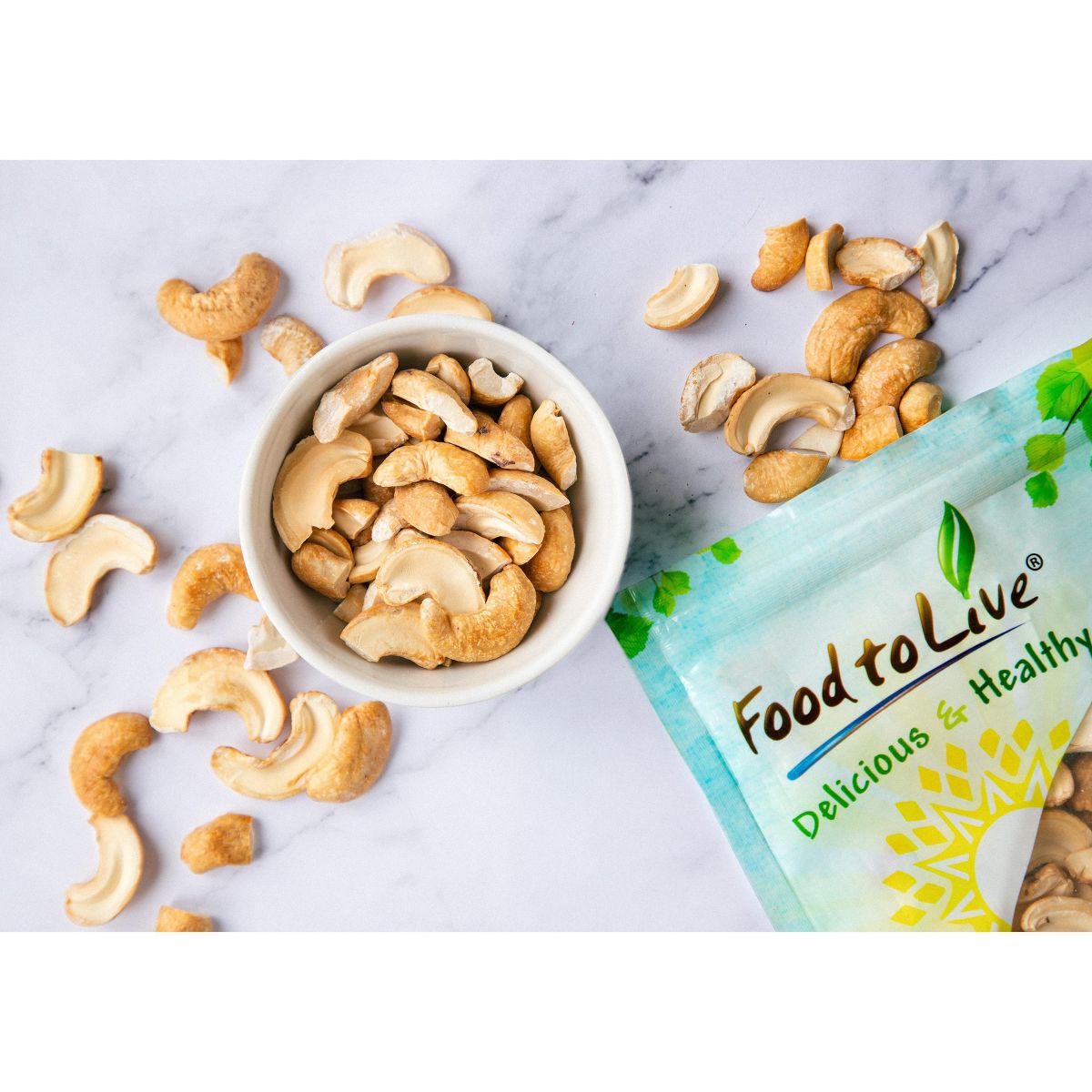 Disfruta los trozos de anacardo tostados en seco y orgánicos de Food to Live. Snack saludable, crujiente y lleno de sabor natural. ¡Pruébalos!