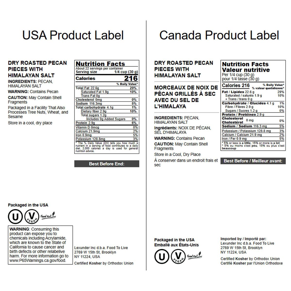 Nuez Pecana tostada y salada en piezas por Food to Live. Snack saludable y crujiente, perfecto para disfrutar sola o en tus recetas.