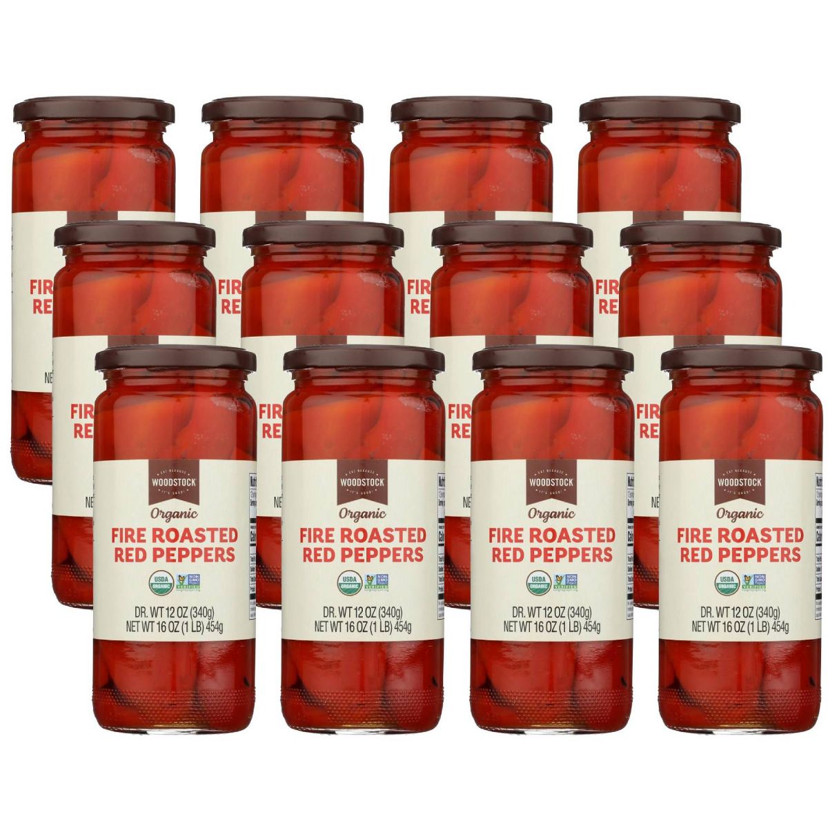 Pimientos Rojos Asados al Fuego Woodstock Orgánicos – Caja de 12/16 oz