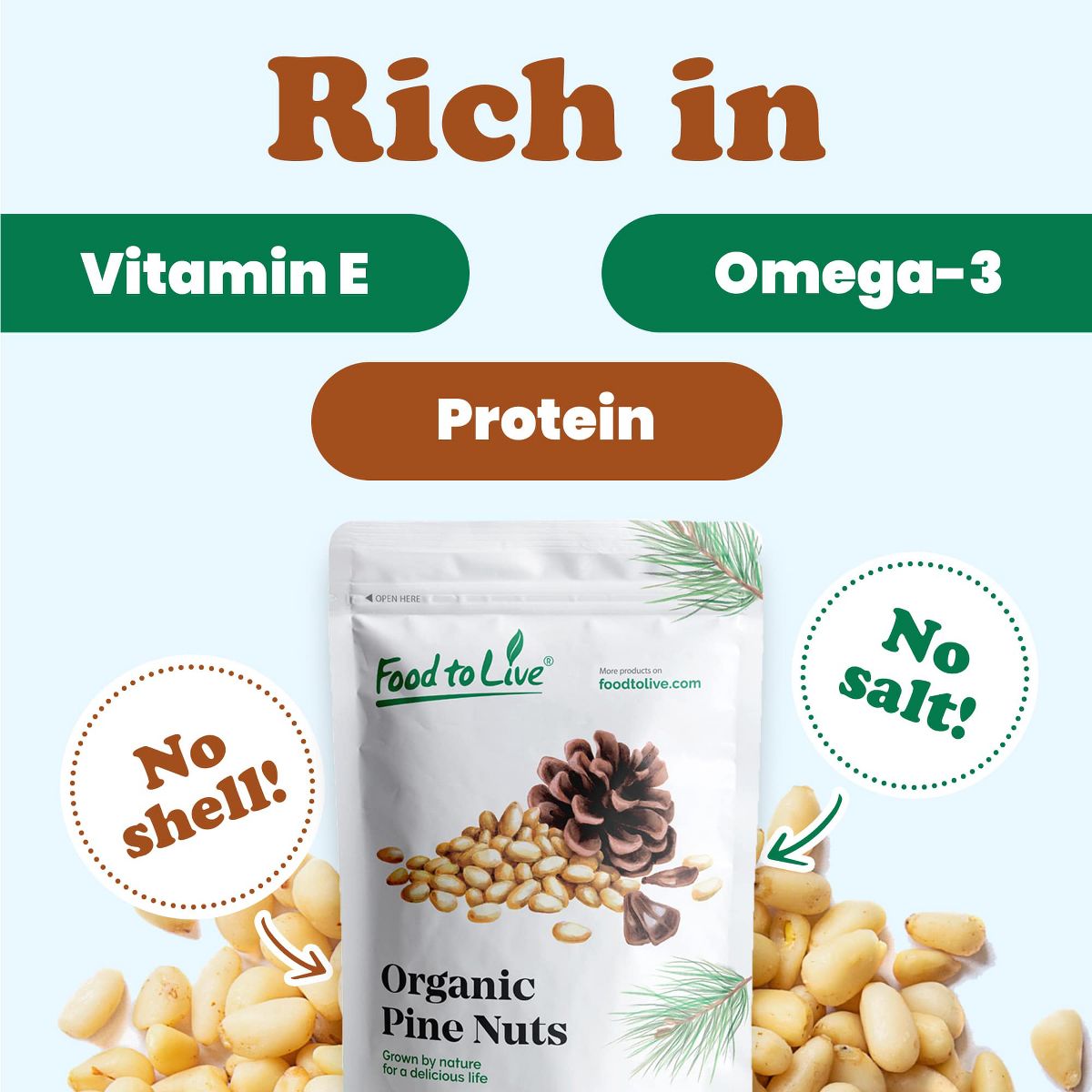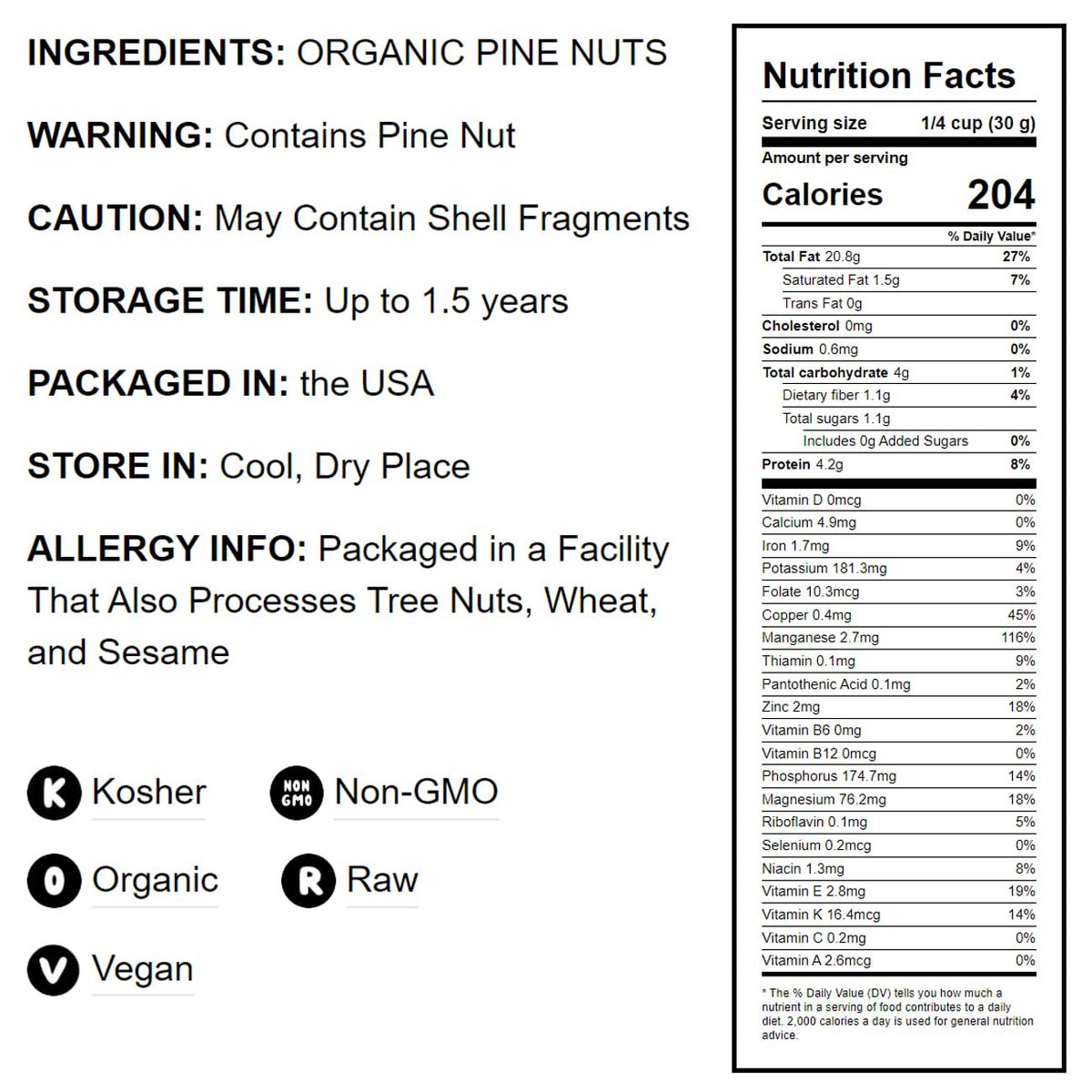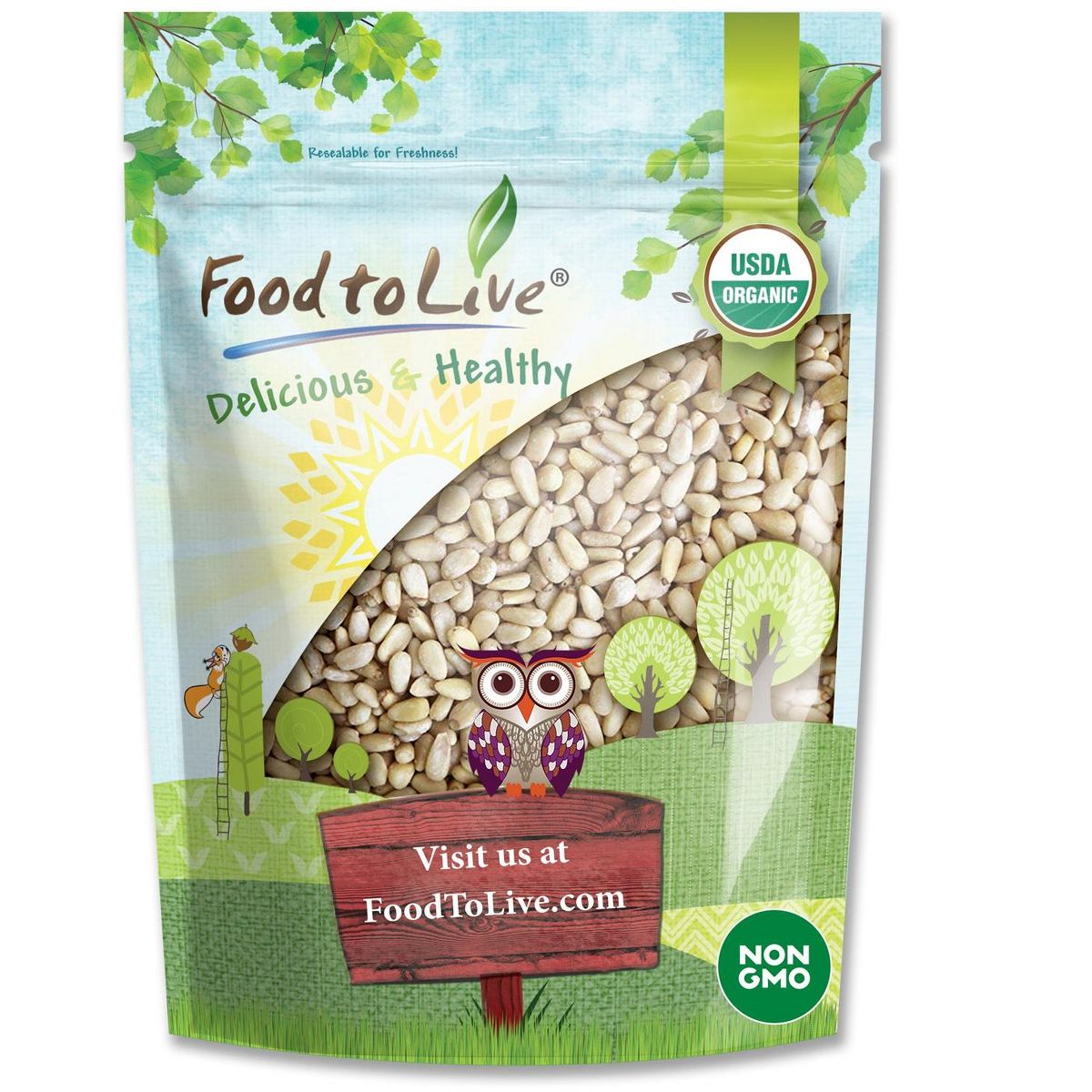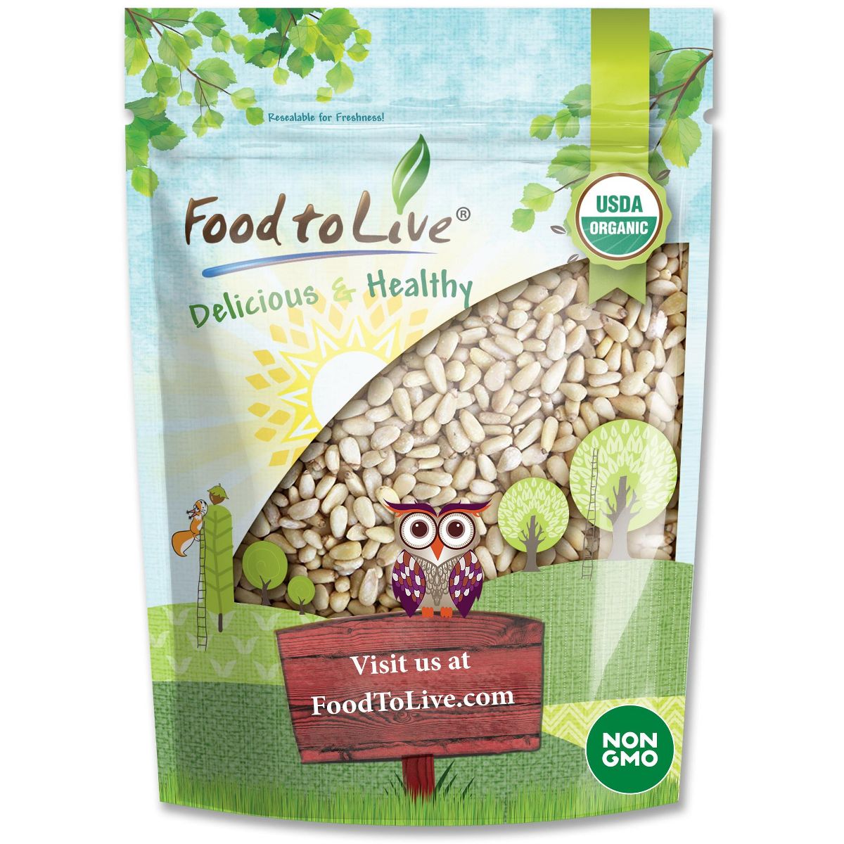 Piñones orgánicos crudos de Food to Live. Ideales para recetas veganas, kosher y libres de transgénicos. Disfruta su sabor natural y calidad premium.