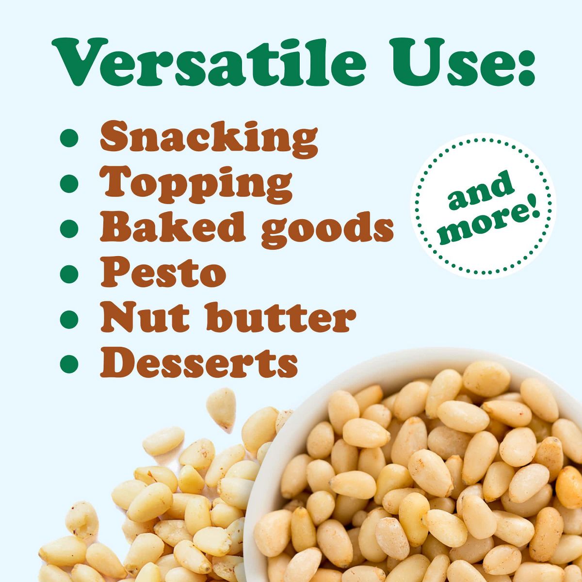 Piñones crudos y kosher de Food to Live. Ideales para tus recetas, pesto o como snack saludable. Gran calidad a granel. ¡Pruébalos!