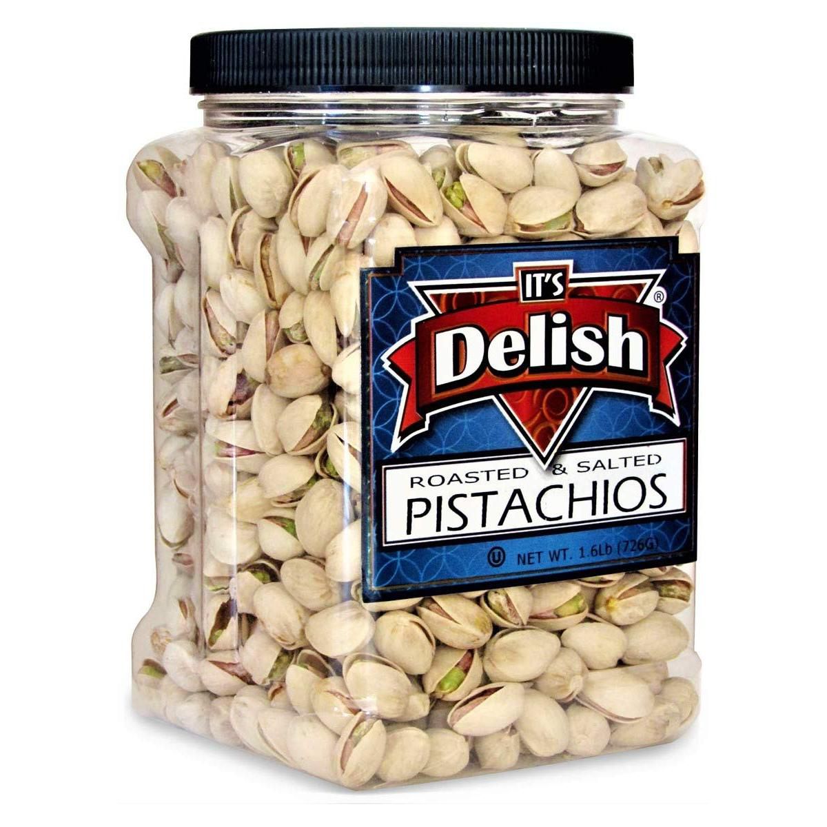 Pistachios Tostados con Sal Marina de It’s Delish, Contenedor Jumbo de 1.6 LBS