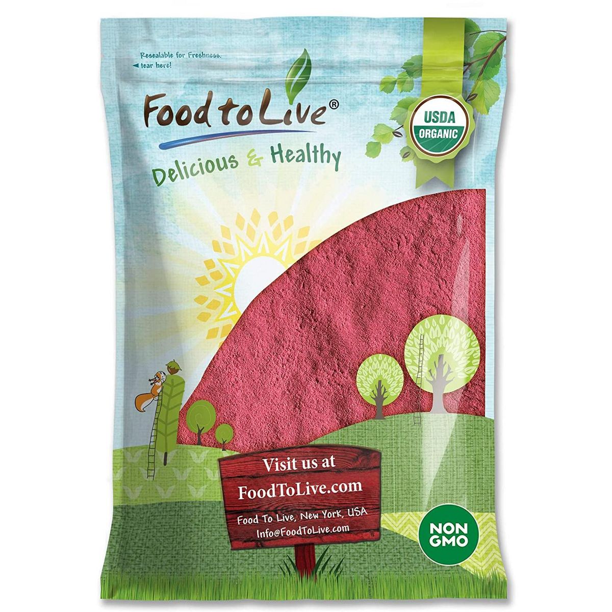 Polvo de Frambuesa Orgánico Food to Live. Superalimento vegano, crudo y sin OGM. Ideal para enriquecer jugos, licuados y bebidas. ¡Potencia tu nutrición!