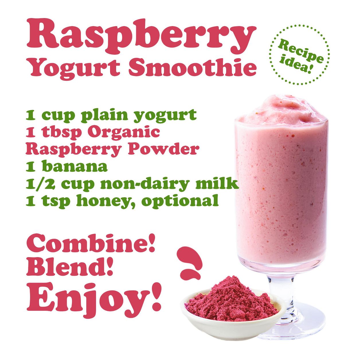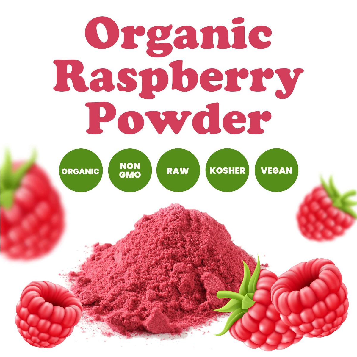 Polvo de Frambuesa Orgánico – Sin OGM, Crudo, Superalimento Vegano, Granel, Ideal para Jugos, Bebidas y Licuados