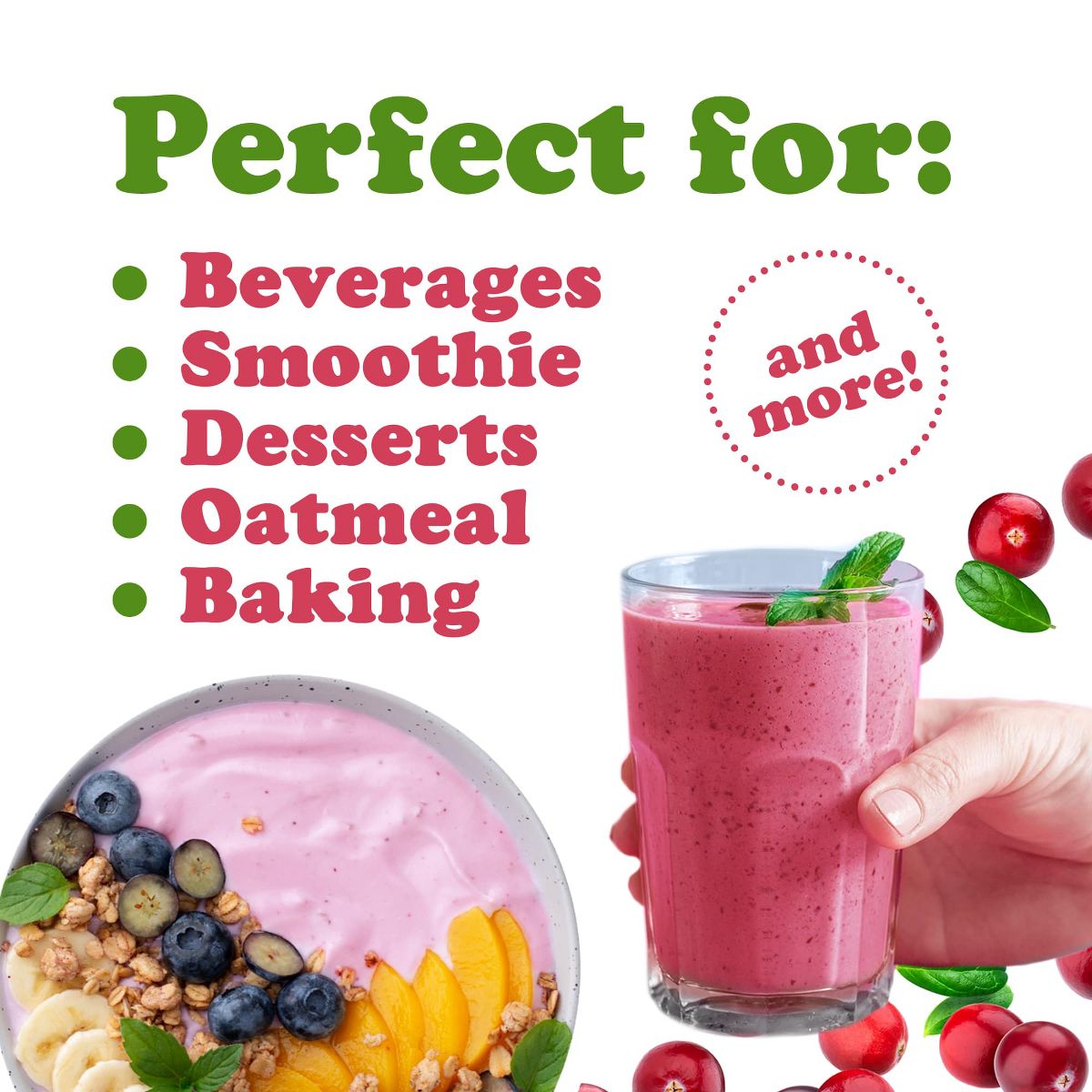 Polvo de Jugo de Arándano Food to Live. Disfruta el sabor y los antioxidantes naturales en su versión en polvo, fácil de usar en batidos y recetas.